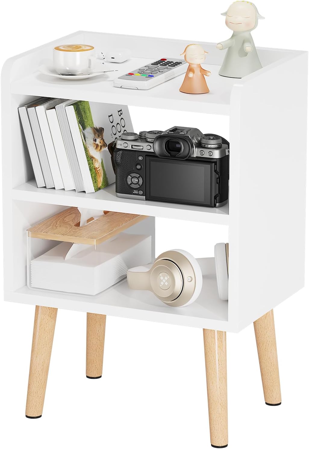 【3-Tier Open Storage & Versatile Use】2 open shelves + a wide tabletop to organize books, remotes, lamps, or plants. Use as a bedside table, living room end table, or nursery side table—fits all decor styles!