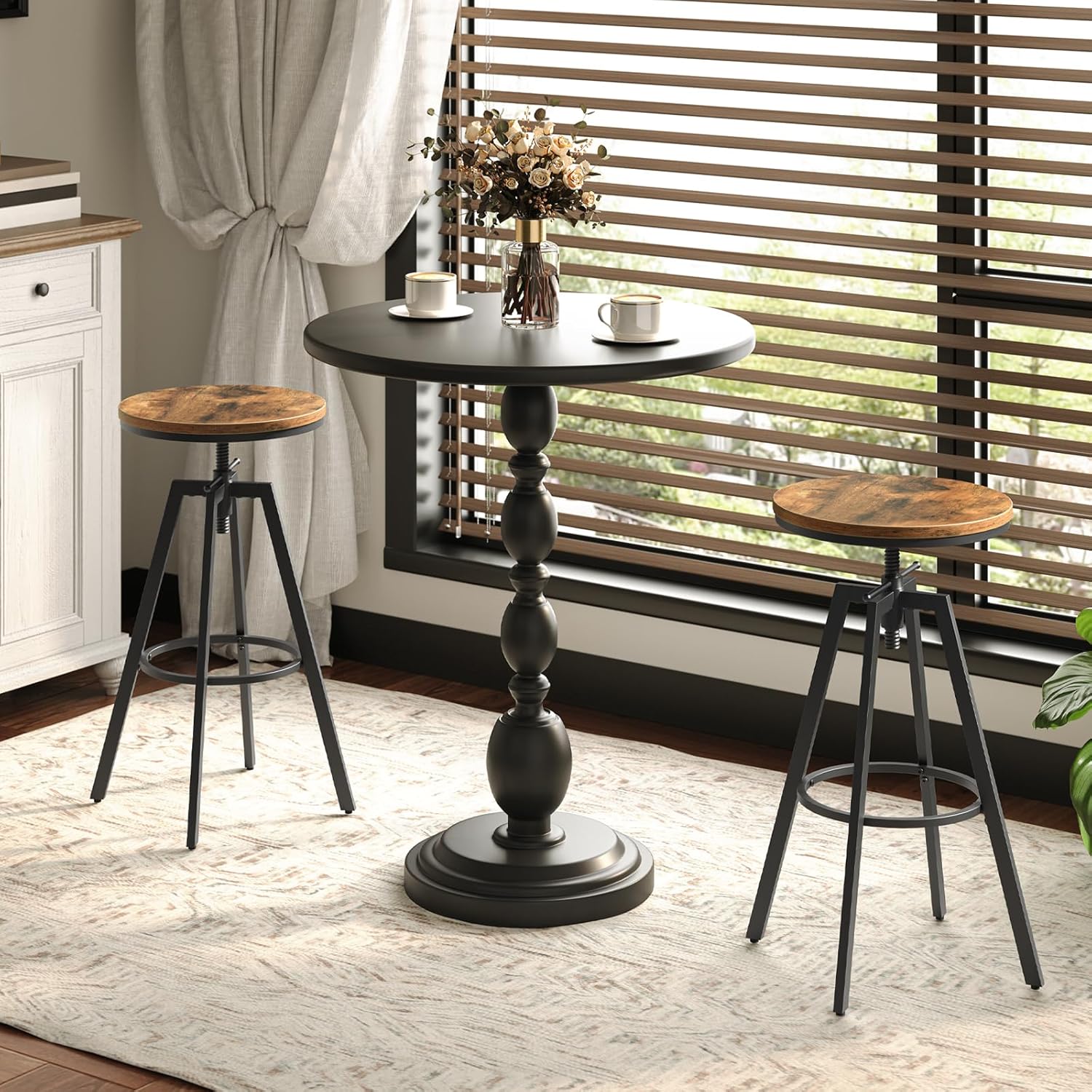 Sturdy Construction: Made of premium engineered wood and metal, this round bar stool set exhibits exceptional stability and durability. The seat is securely encased in the metal frame, capable of bearing up to 220 lb, making you sit safely