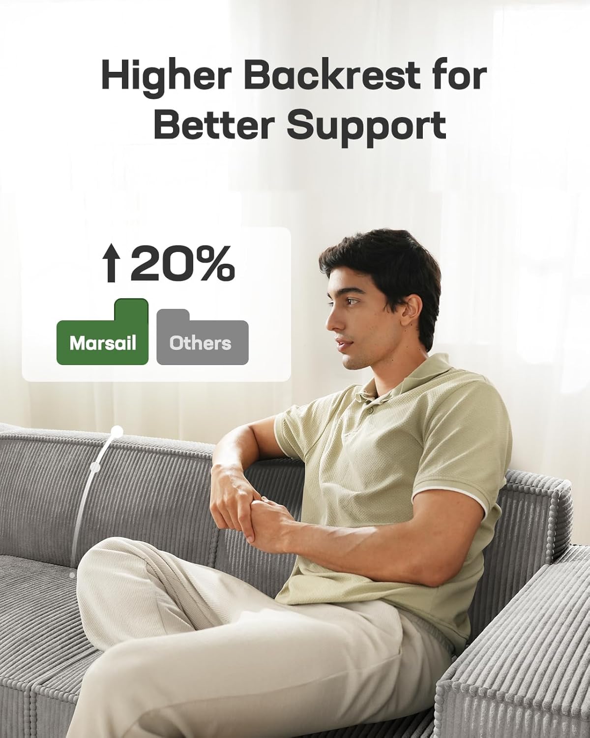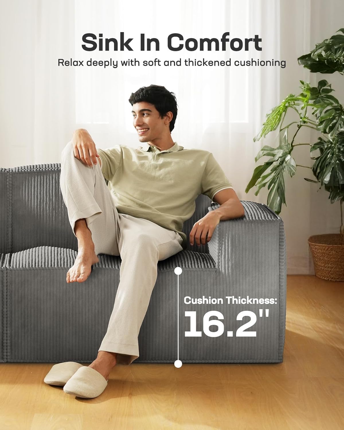 【Stronger Support & Spacious Seat】With a 20% higher backrest, our corduroy cloud couches provide enhanced support for your back and shoulders, ensuring comfort and stability. The oversized modular sofa features a deeper seat and wider arms, which enhance comfort and provide more space for your essentials. Whether you’re sitting, lying, or leaning, its spacious design guarantees comfort every time.