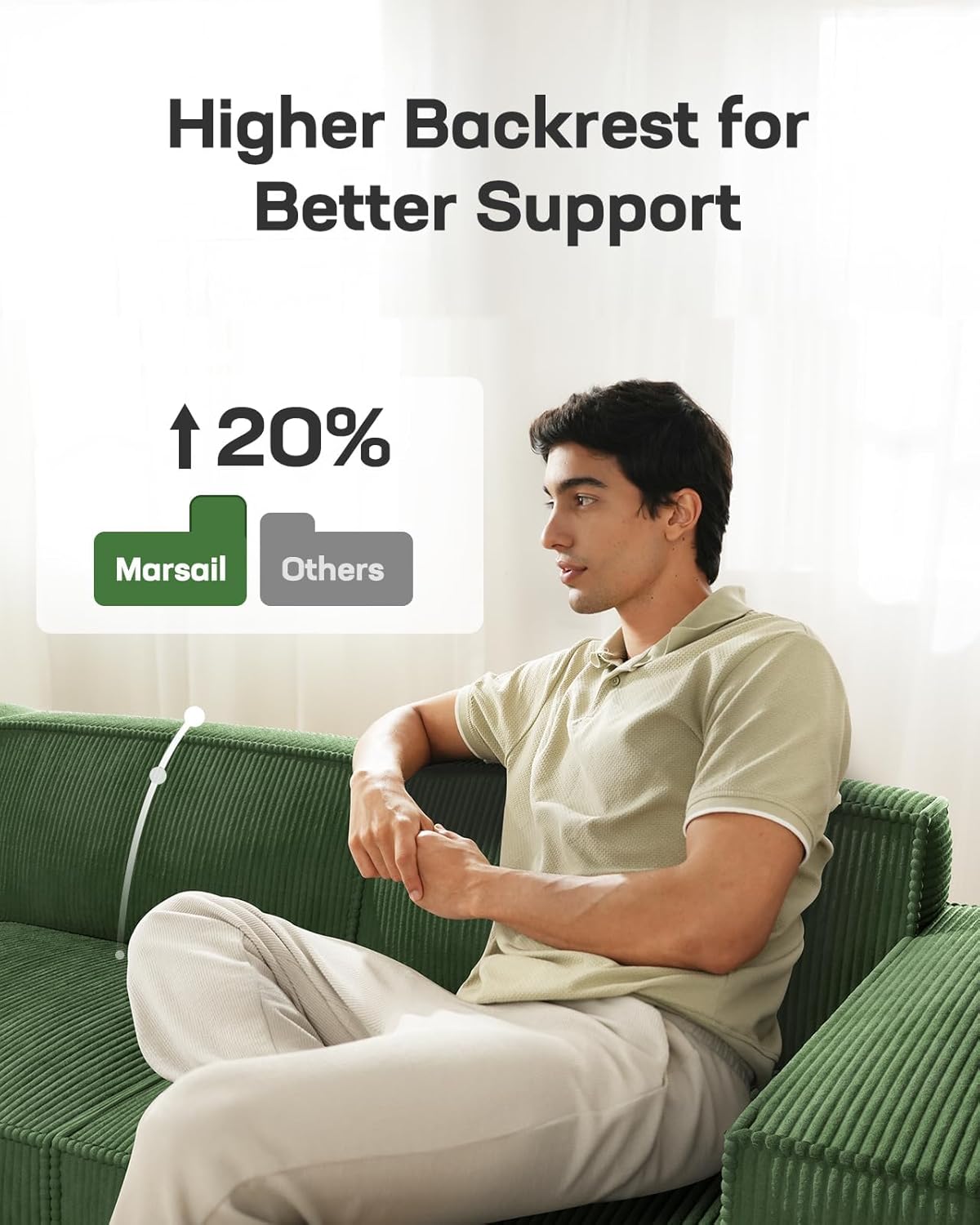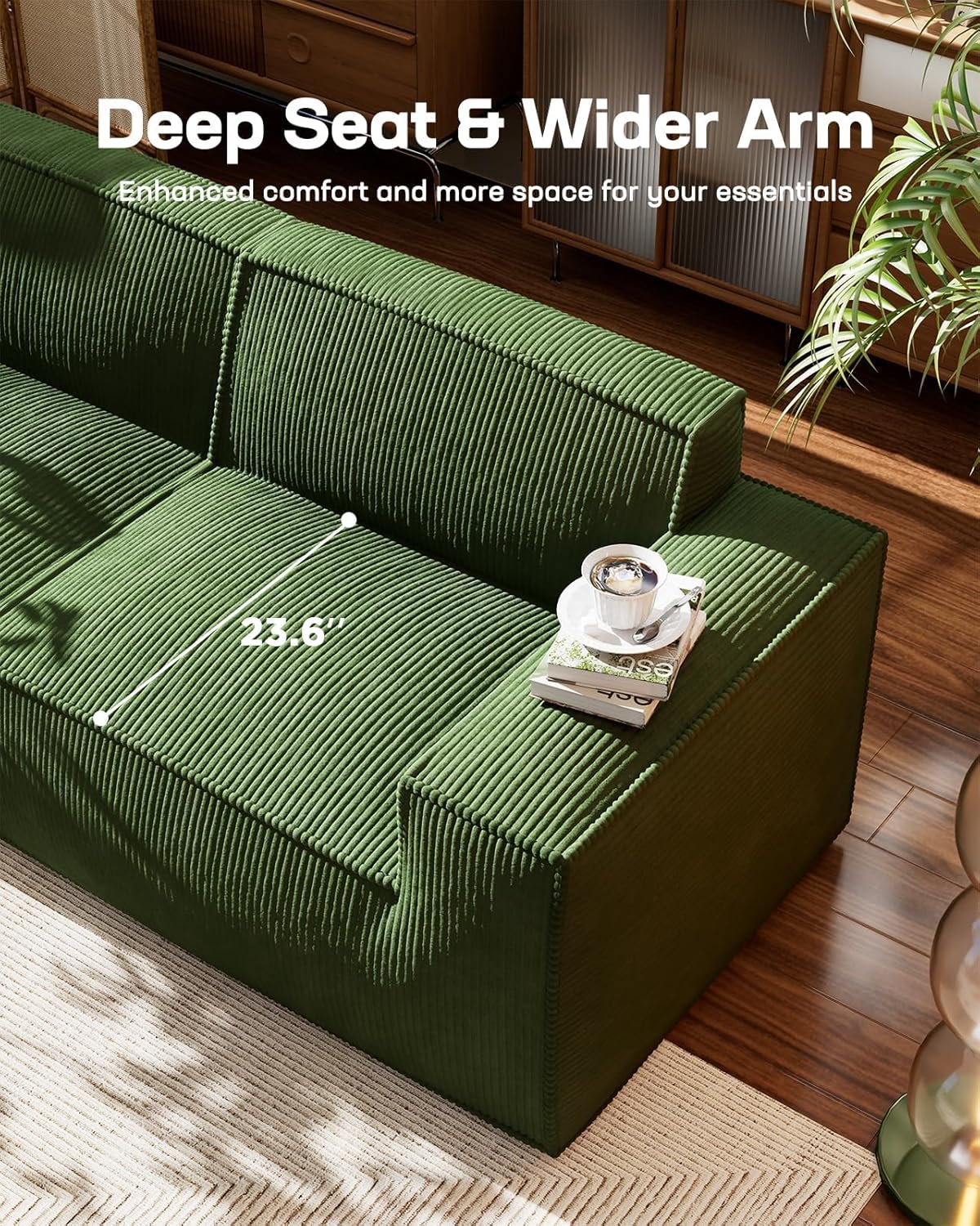 【Stronger Support & Spacious Seat】With a 20% higher backrest, our corduroy cloud couches provide enhanced support for your back and shoulders, ensuring comfort and stability. The oversized modular sofa features a deeper seat and wider arms, which enhance comfort and provide more space for your essentials. Whether you’re sitting, lying, or leaning, its spacious design guarantees comfort every time.