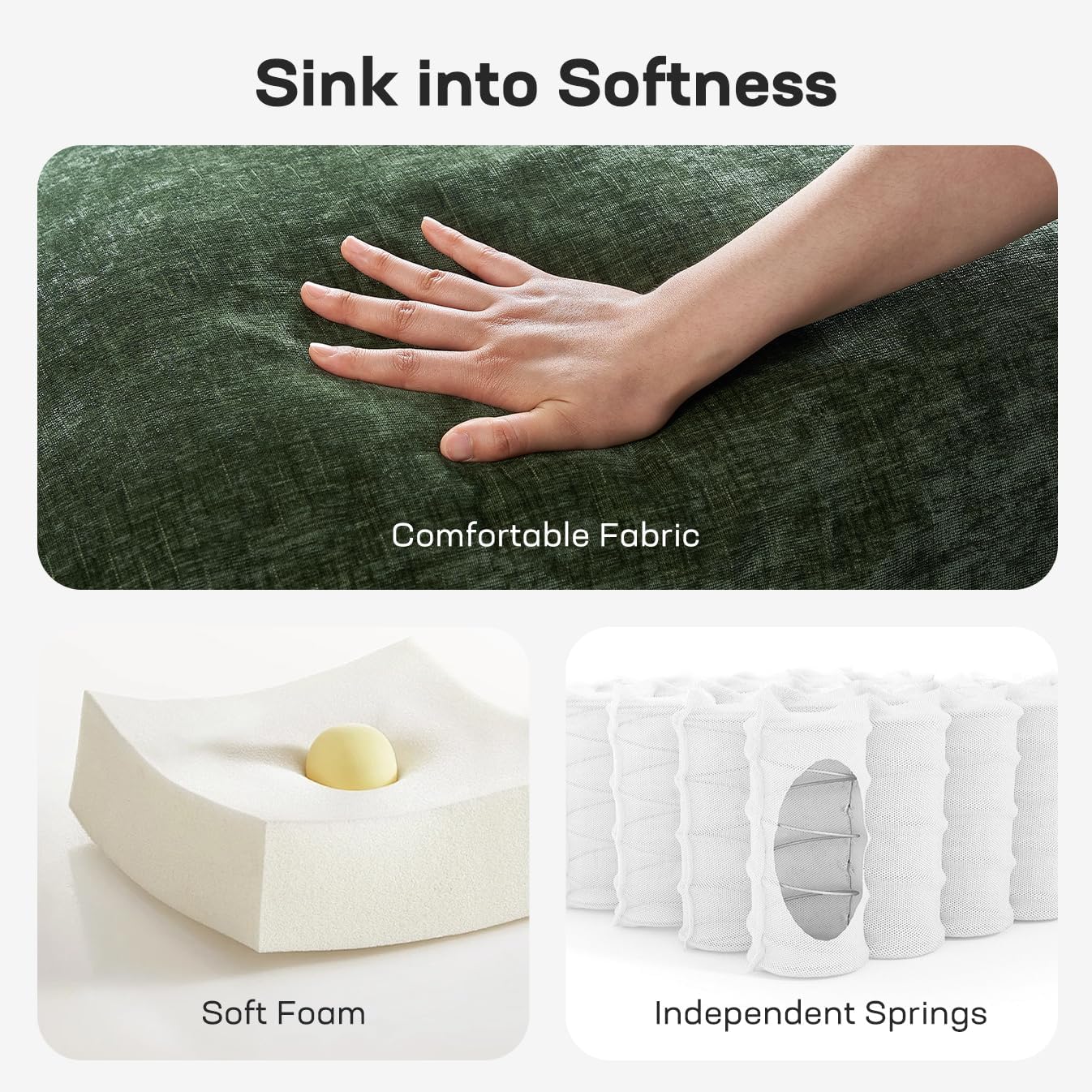 Comfortable Seating & Sleeping: 5.9″ high-density foam & pocket coil seat cushions offer soft, supportive comfort. The 3″ mattress uses dual-layer foam and memory foam to relax your body and improve sleep quality on this sofa bed.