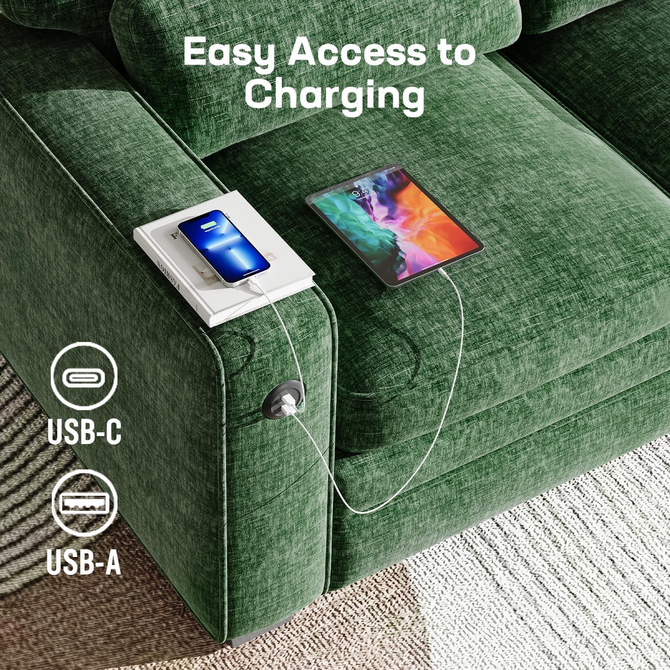 Handy USB Charging Design: This couch bed is built with 2 USB charging ports (USB-A & USB-C) on armrests, letting you charge electronics conveniently while resting. Enjoy uninterrupted power on this practical sofa for leisure and daily use.