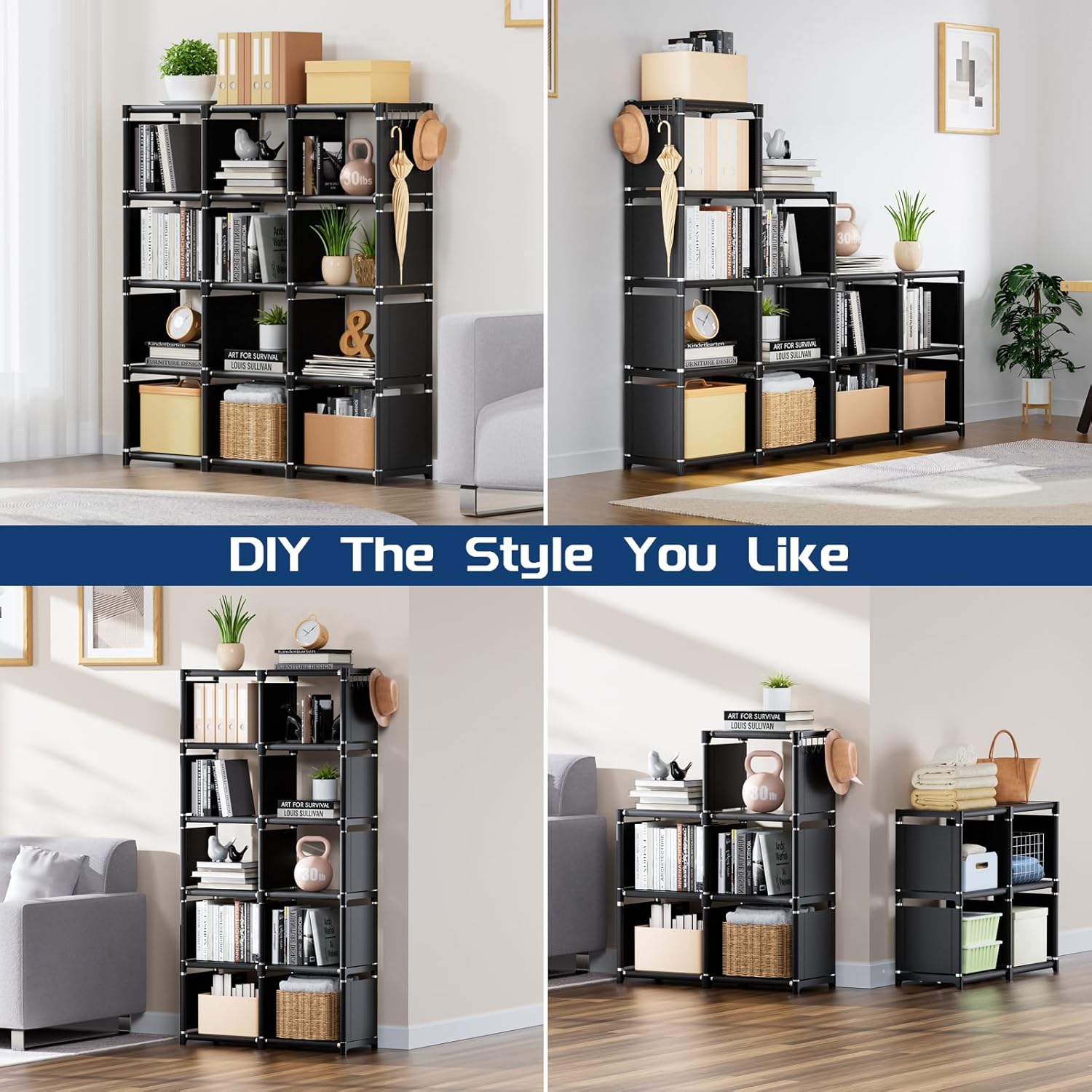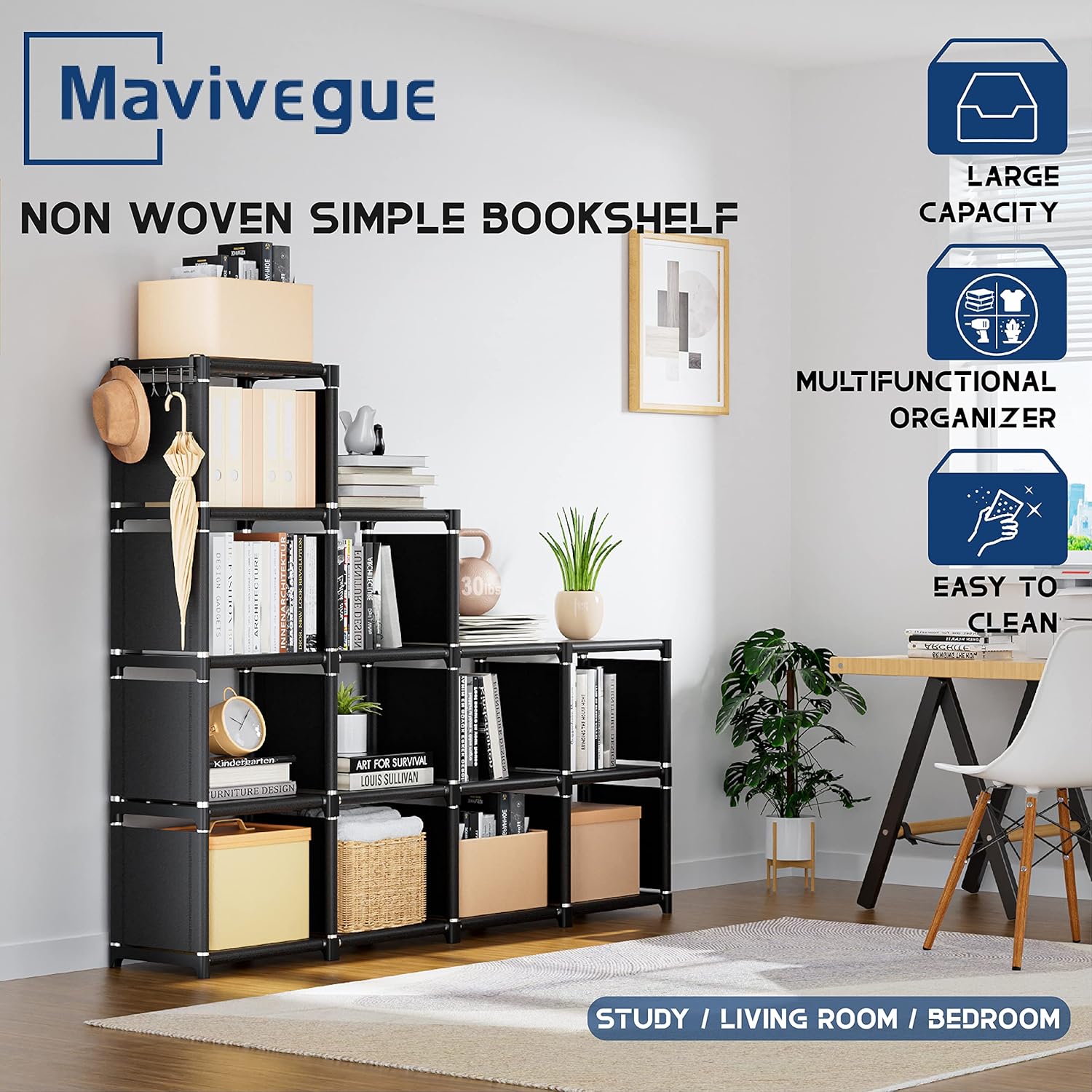 Mavivegue Book Shelf, 12 Cube Storage Organizer, DIY Bookcase, Metal Bookshelf,Tall Book case for Bedroom, Living Room,Office,Closet, Black Cubicle Rack