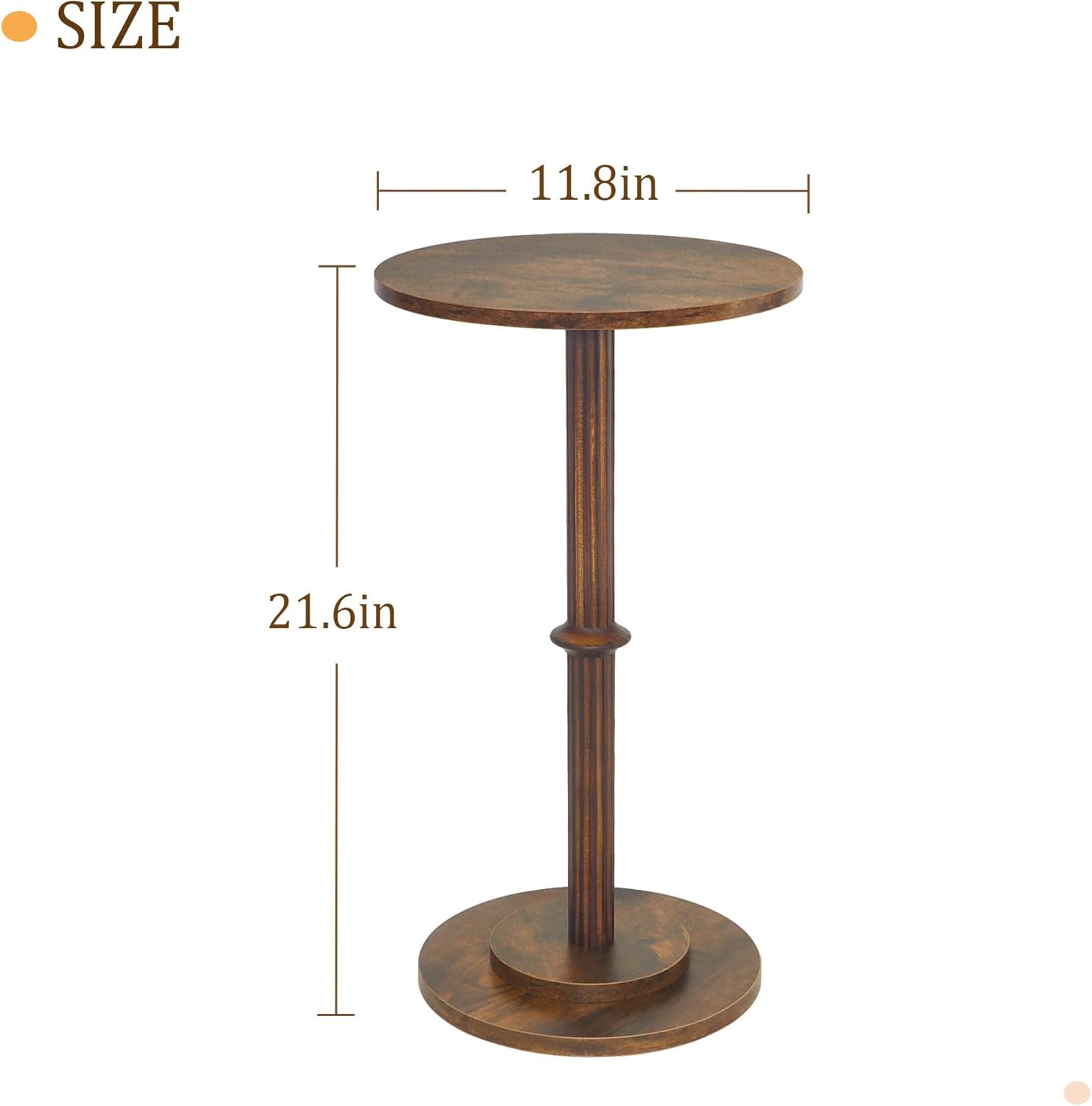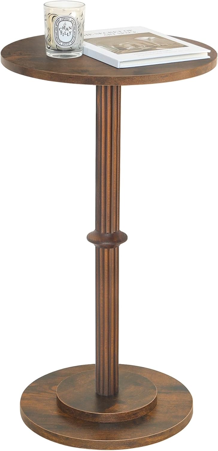 MaxSmeo Drink Table, Small Side Table for Small Spaces, Modern Round End Table with Fluted Wood Leg, Rustic Brown