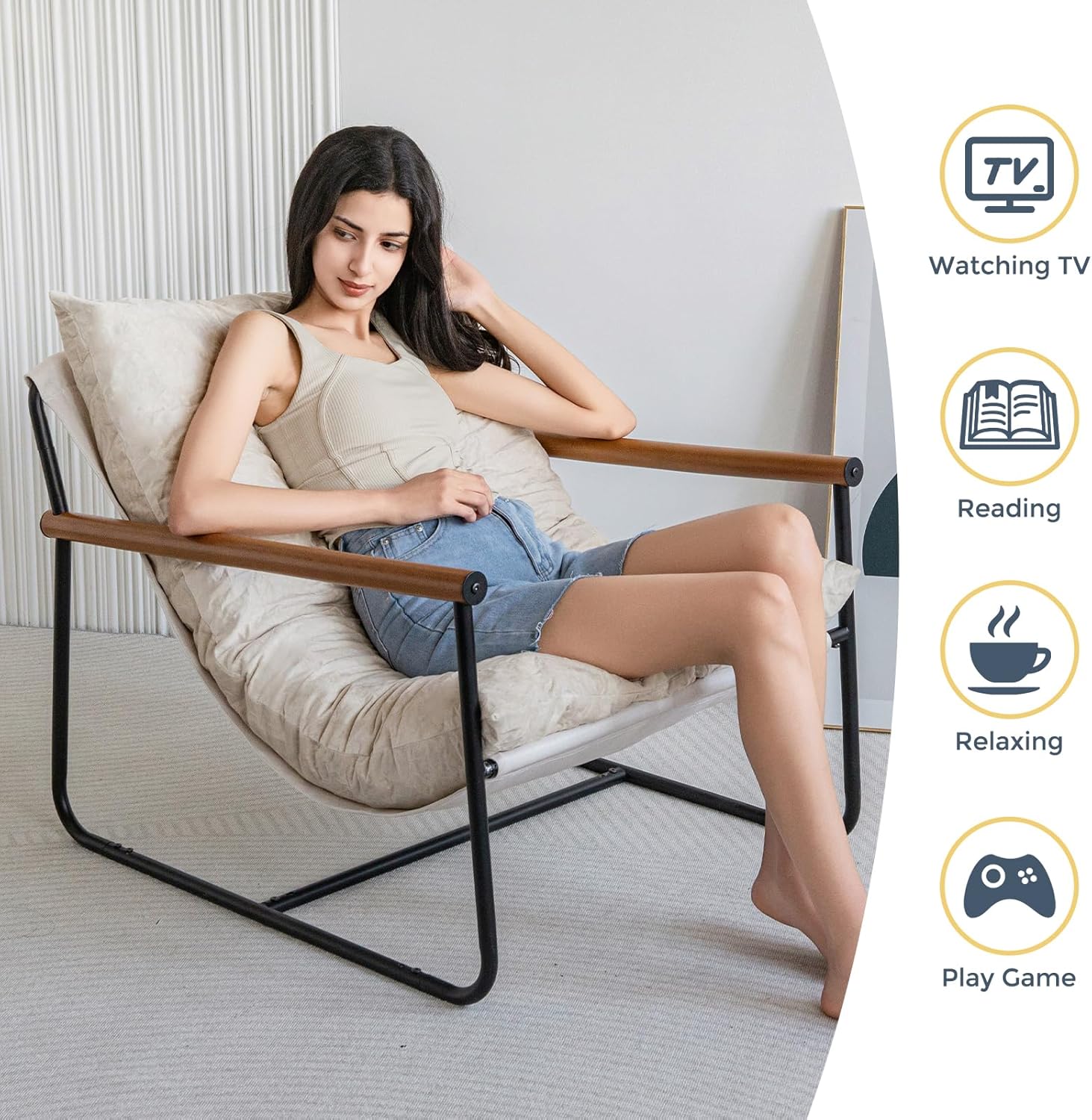 MAXYOYO Accent Chair, Velvet Arm Chair Living Room Chair with Metal Frame, Reading Accent Chair, Modern Bedroom Chair, Boucle Armchair with Wooden Arms, Beige