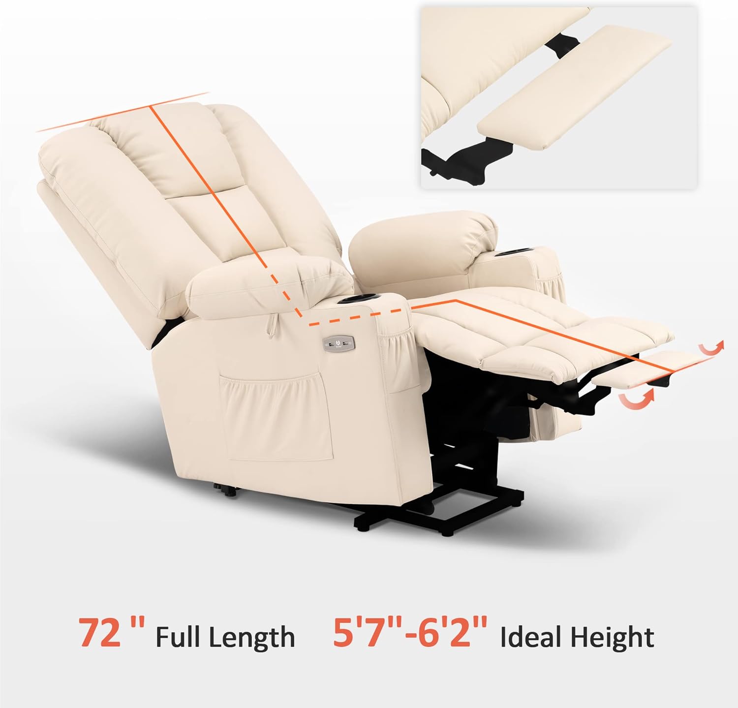 MCombo Large Power Lift Recliner Chair Sofa with Massage and Heat for Big and Tall Elderly People, 3 Positions, Cup Holders, and USB Ports, Faux Leather 7539 (Large, Cream White)