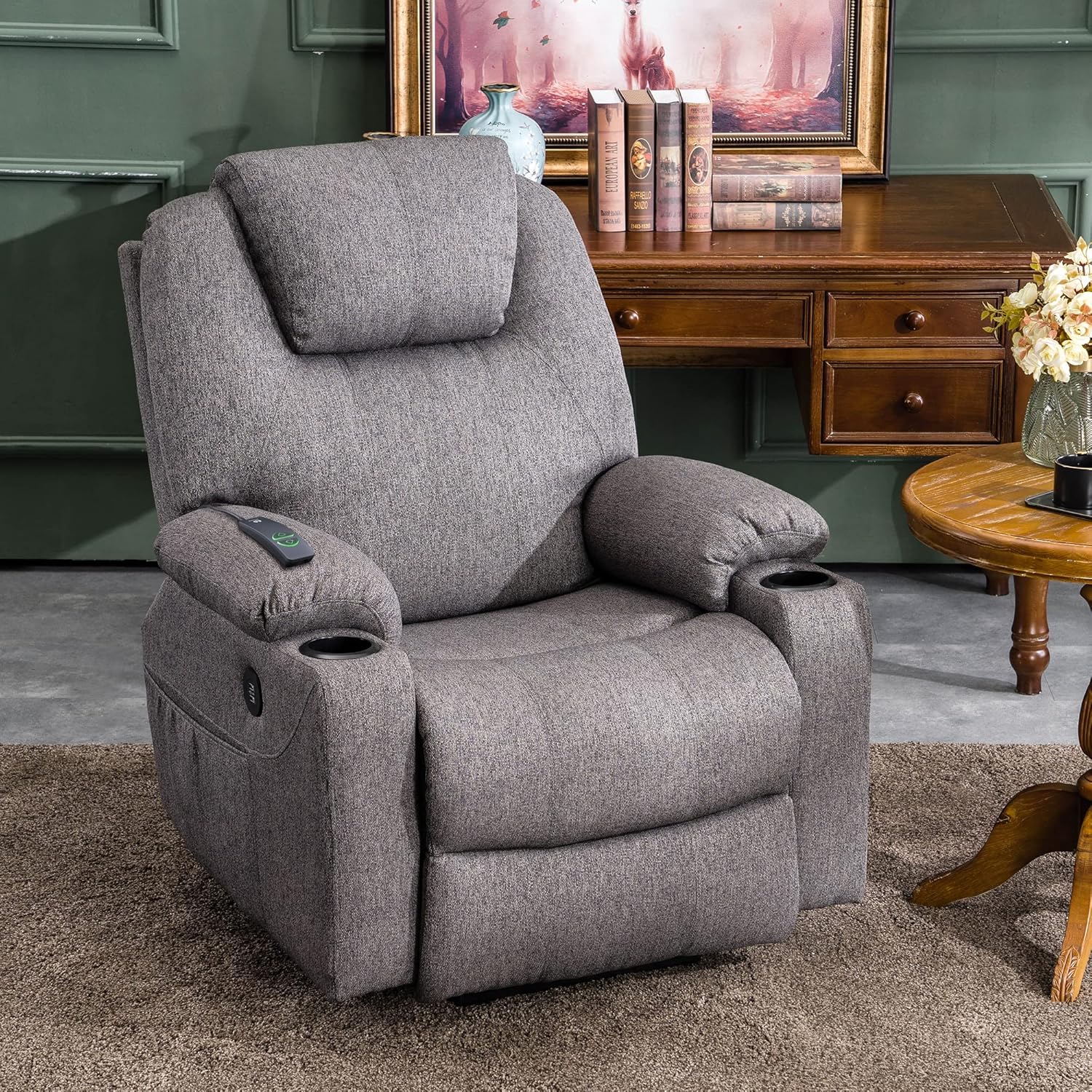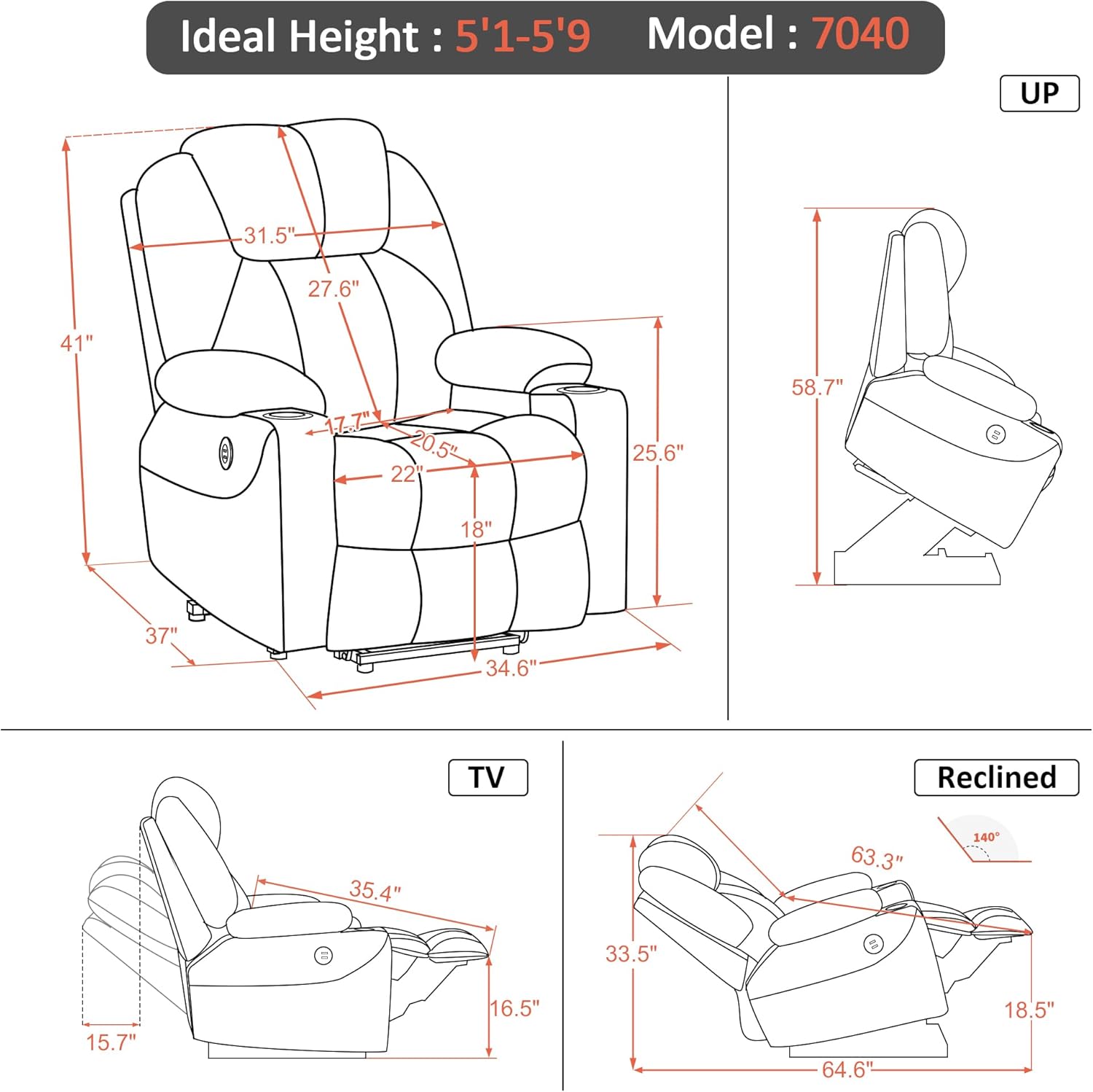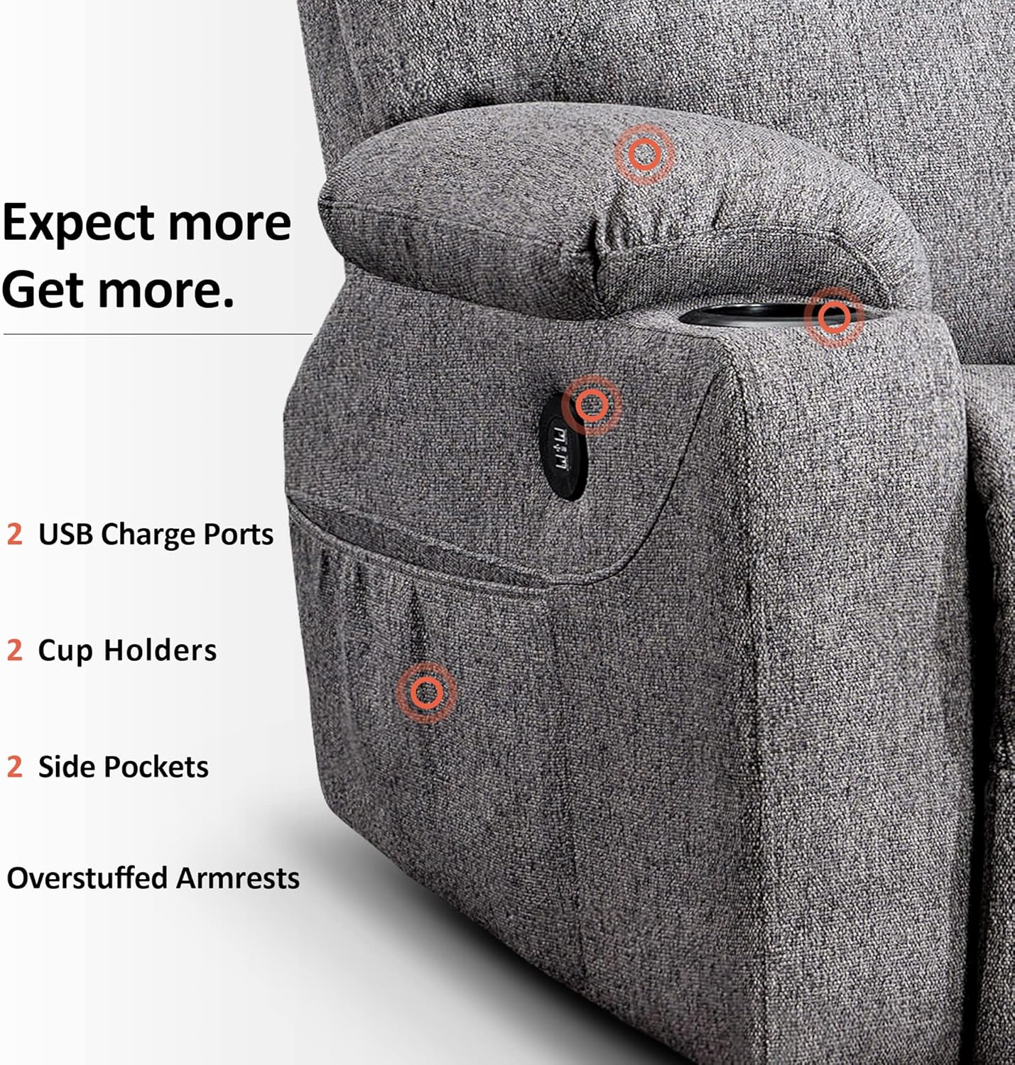 MCombo Power Lift Recliner Chair for Elderly, Lift Chair with Heat and Massage, FSC Certified, USB&Type C Ports, Cup Holders, Fabric 7040 (Medium, Gray)