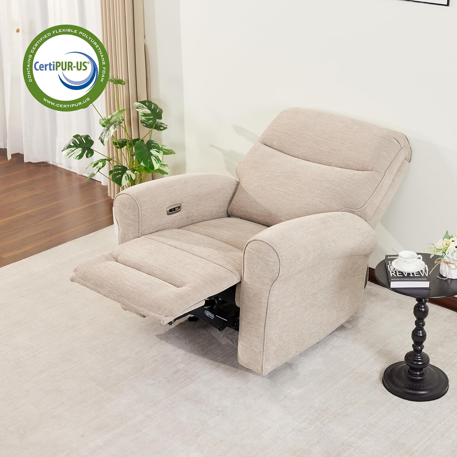 MCombo Power Wall Hugger Recliner Chair for Small Space RV Living Room, USB & USB-C Charging Ports, Modern Rolled Arm Recliner, Fabric PR630 (Beige)