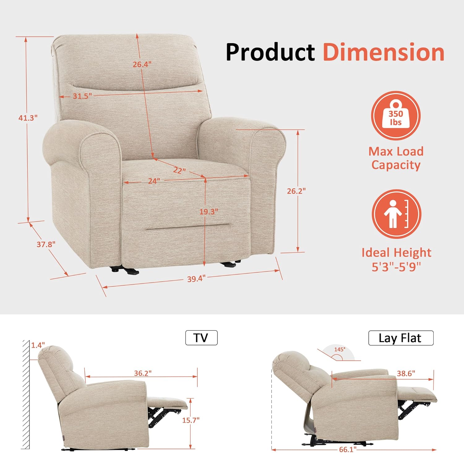 This recliner remains just 1.4″ from the wall, thanks to its smart sliding seat mechanism—no bulky clearance needed behind the chair. Enjoy a full 145° recline for complete relaxation, even in compact spaces like apartments and cozy living rooms.