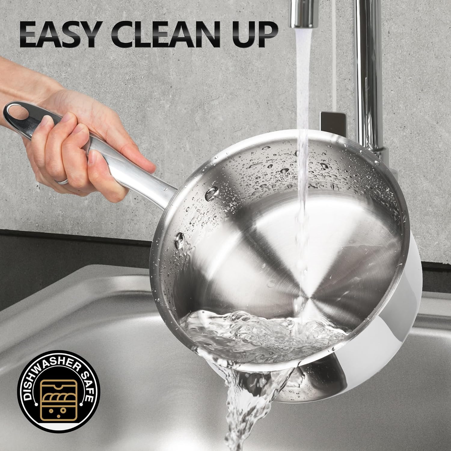 IMPROVED POURING: The flared edge of the 3qt sauce pan provides a drip-free pouring experience, allowing liquids to be poured pan-to-plate without messy spills or drips