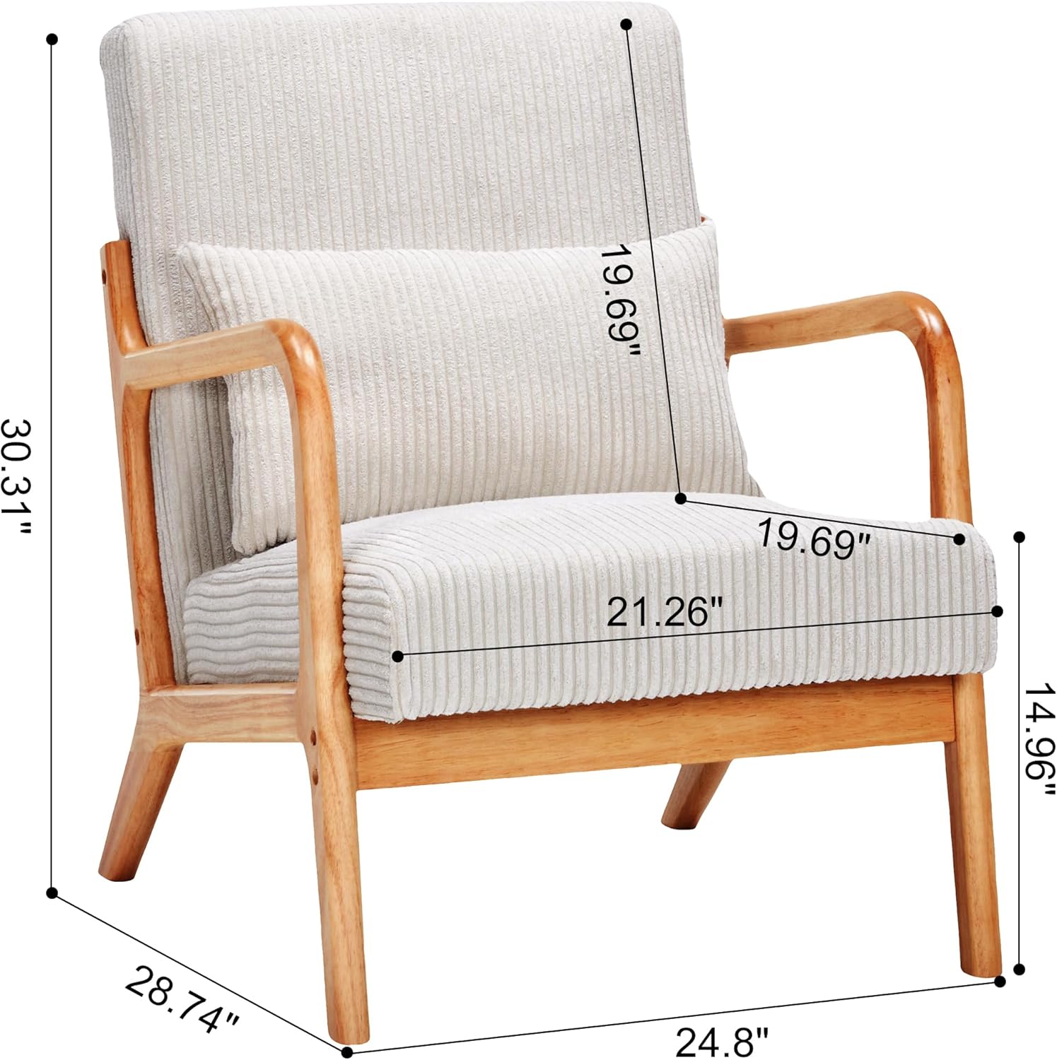 2. Soft corduroy upholstery with lumbar pillow:Each armchair includes a matching lumbar pillow, a padded seat, and a gently curved backrest to provide comfortable support for reading, chatting, relaxing, or everyday guest seating.