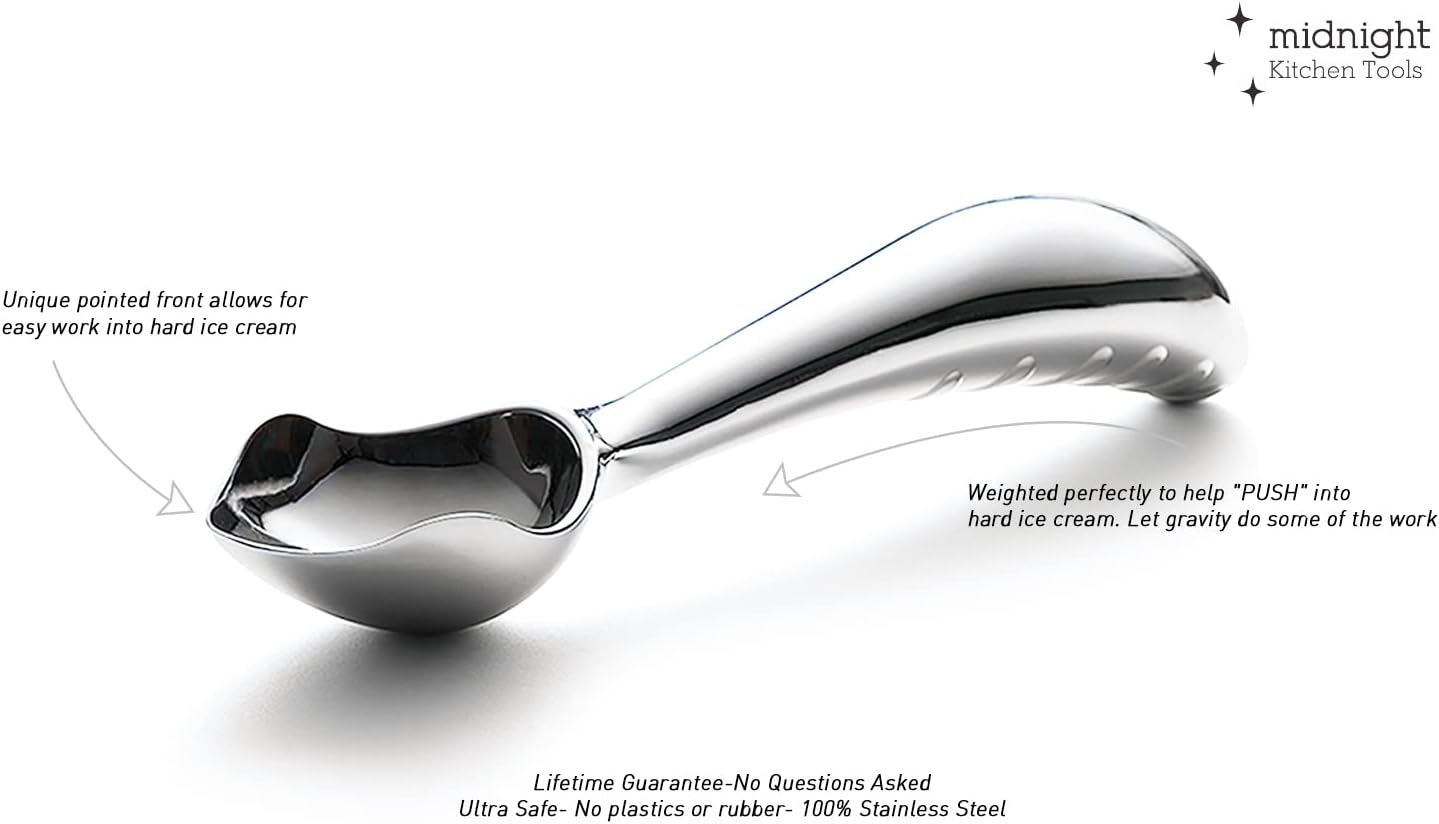 Ergonomic, easy-to-use professional metal scoop: Midnight Scoop-one piece stainless steel designErgonomic, easy-to-use professional metal scoop: Midnight Scoop-one piece stainless steel design