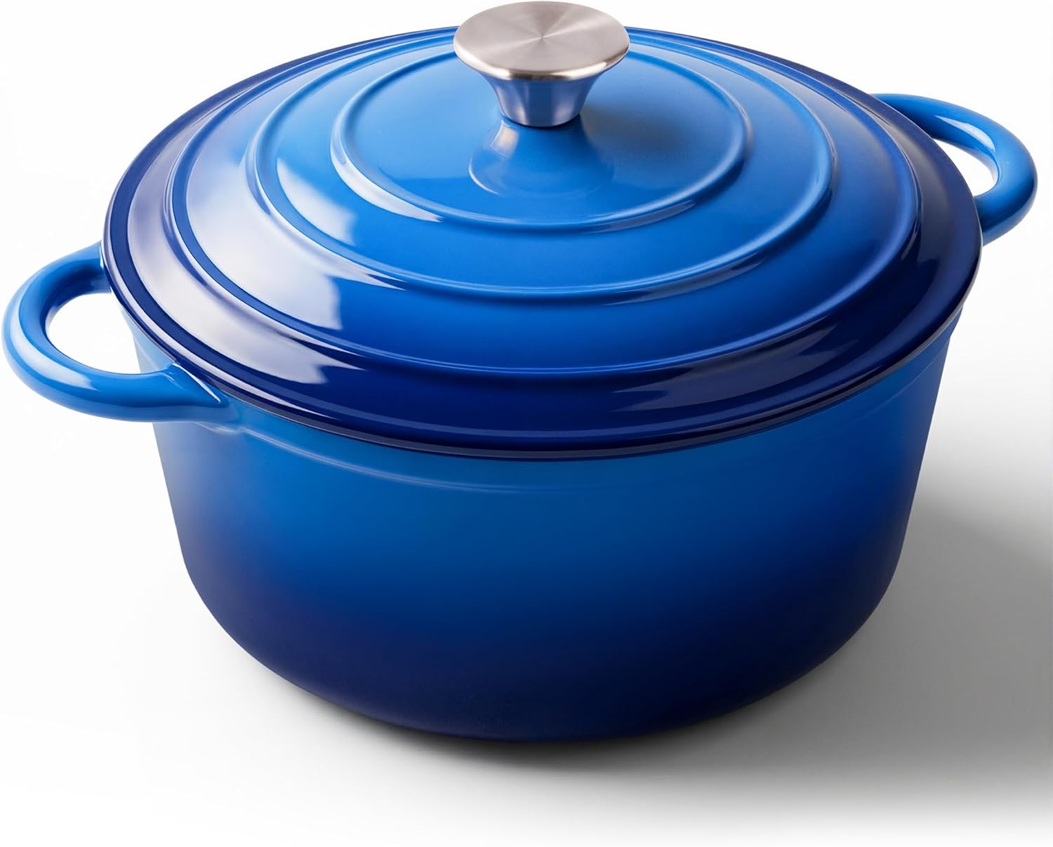 Miereirl 6 Quart Enameled Dutch Oven Pot with Lid, Cast Iron Dutch Oven with Dual Handles for Bread Baking, Cooking, Non-stick Enamel Coated Cookware (Dark Blue)