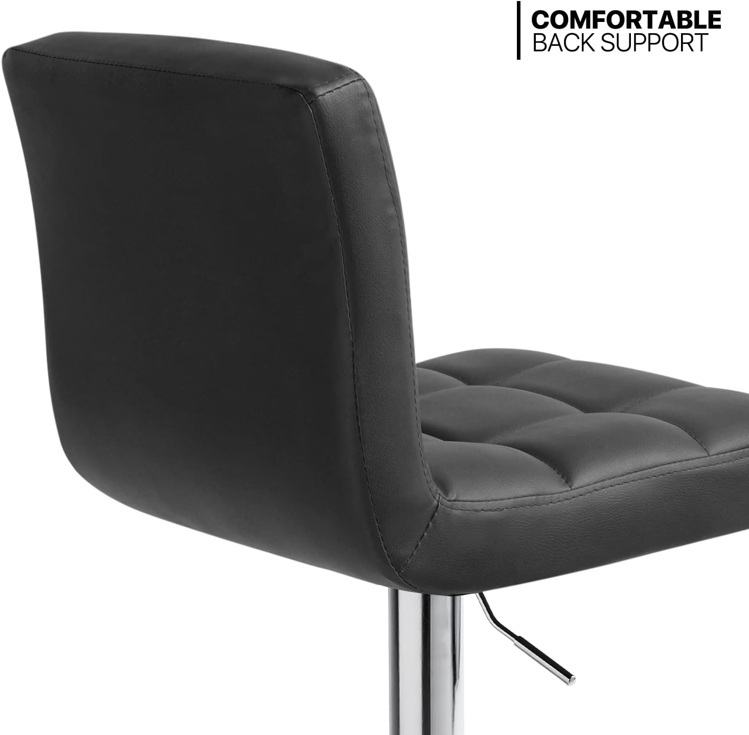 MoNiBloom Barstools Set of 2, Square PU Leather Adjustable Bar Stools with Back, Counter Height Swivel Stool, Barstools for Kitchen Counter, Black
