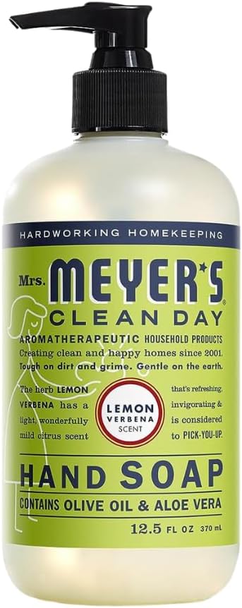 MRS. MEYER’S CLEAN DAY Lemon Verbena Scent Variety, 1 Room Freshener 8 OZ, 1 Liquid Dish Soap 16 OZ, 1 Liquid Hand Soap 12.5 OZ, 1 Multi-surface Cleaner 16 OZ, Lemon Verbena, 1 CT