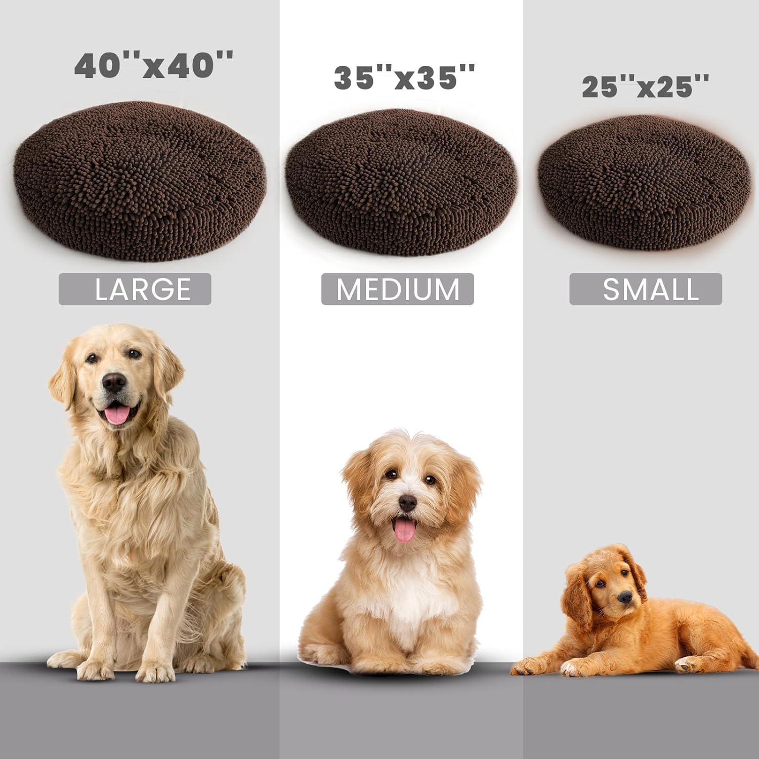 Muddy Mat® Cloud K-9 Bed for Dogs & Cats, Soft & Relaxing Donut Dog Bed, Chenille Material, Removable Cover, Washable & Dryer Safe–Brown Large(40’x40′)