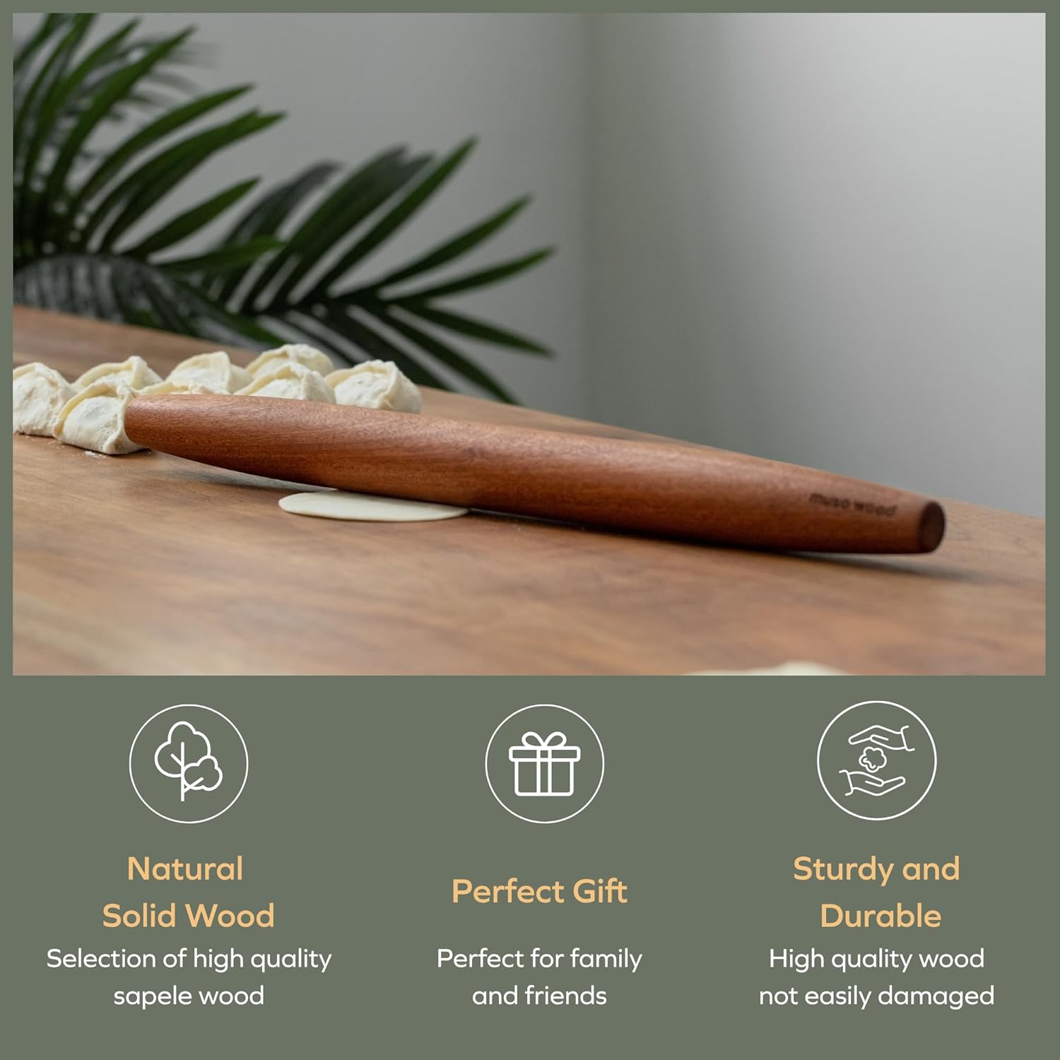 Material: The dough rolling pins are all made of sapele wood, special treatment on the surface to avoid excessive moisture penetration. They are totally safe in use.