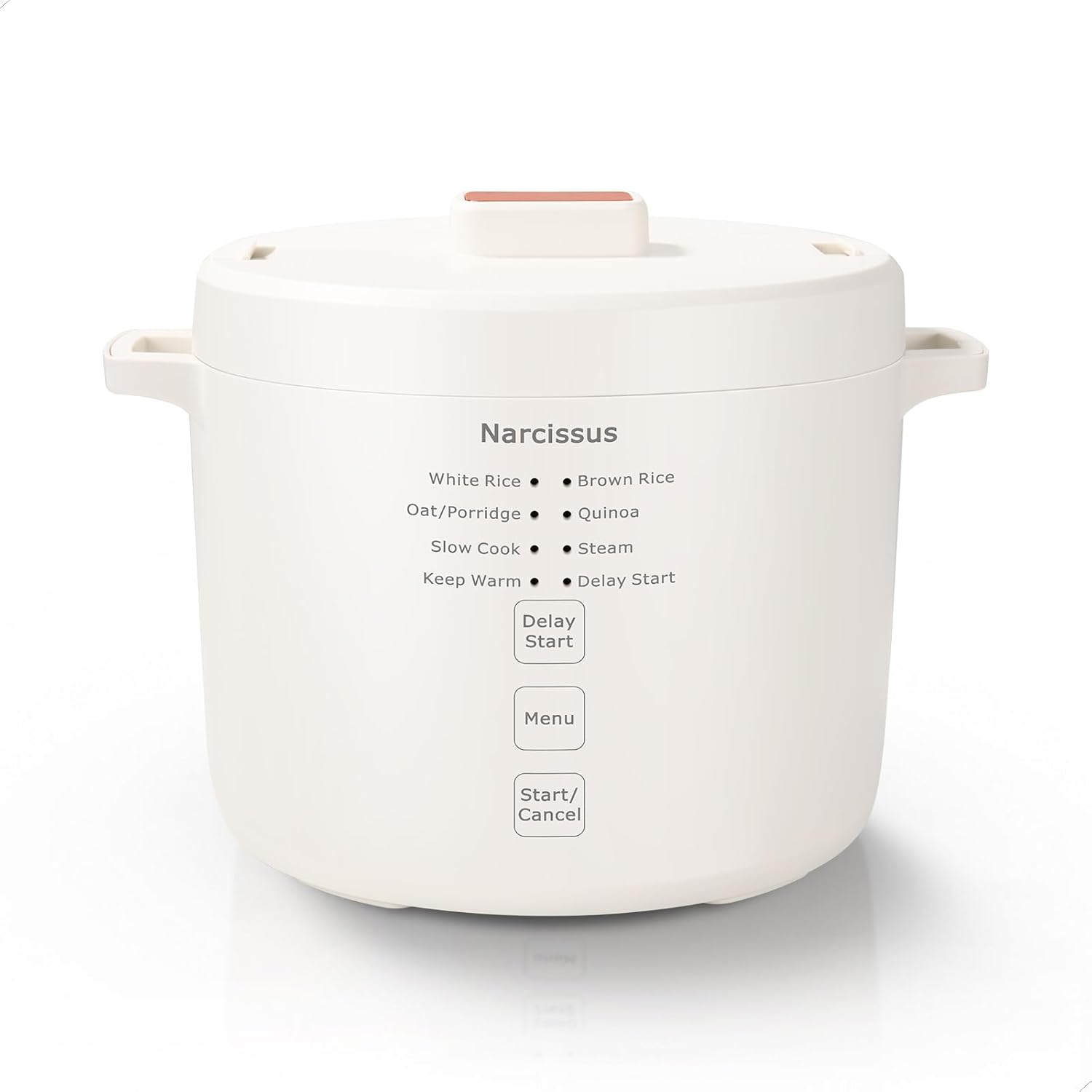 Narcissus 3.5-Cup Rice Cooker for 1-3 People, Multifunctional for Rice, Oatmeal, Quinoa – Slow Cook, Steam, Cook Rice & Steam Dish Together, Rice White