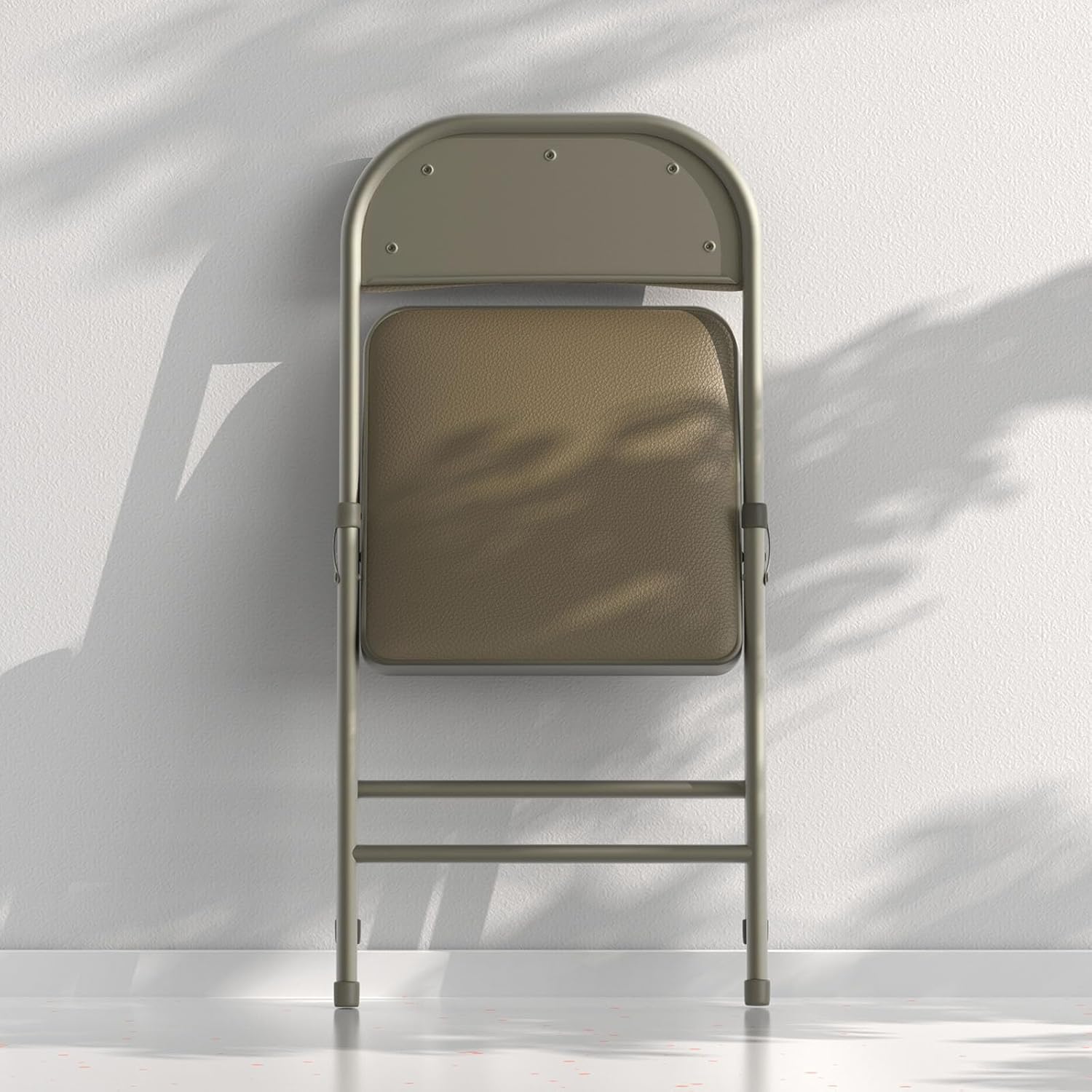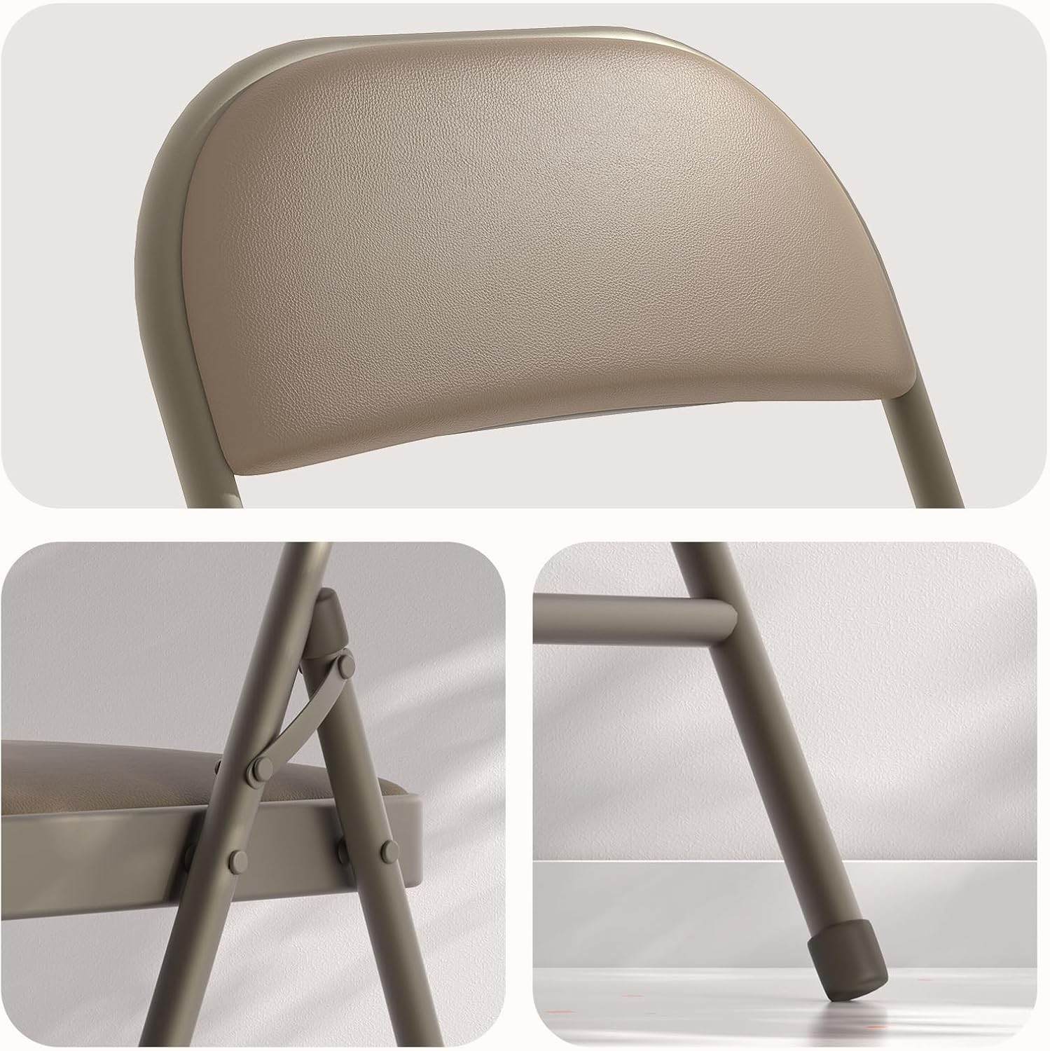 Nazhura 4 Pack Folding Chairs with Padded Vinyl Cushion Chairs with Comfortable Cushion and Durable Steel Frame for Home and Office, for Indoor and Outdoor Events (Kahki Vinyl Padding 4 Pack)