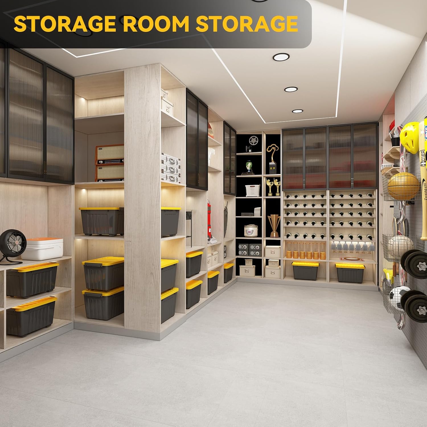 Nazhura 72Quart Plastic Storage Bin, Stackable and Nestable Storage Boxes with White Lids and Secure Latching Buckles, Large Storage Container (Black/Yellow, 72Quart-6Pack)