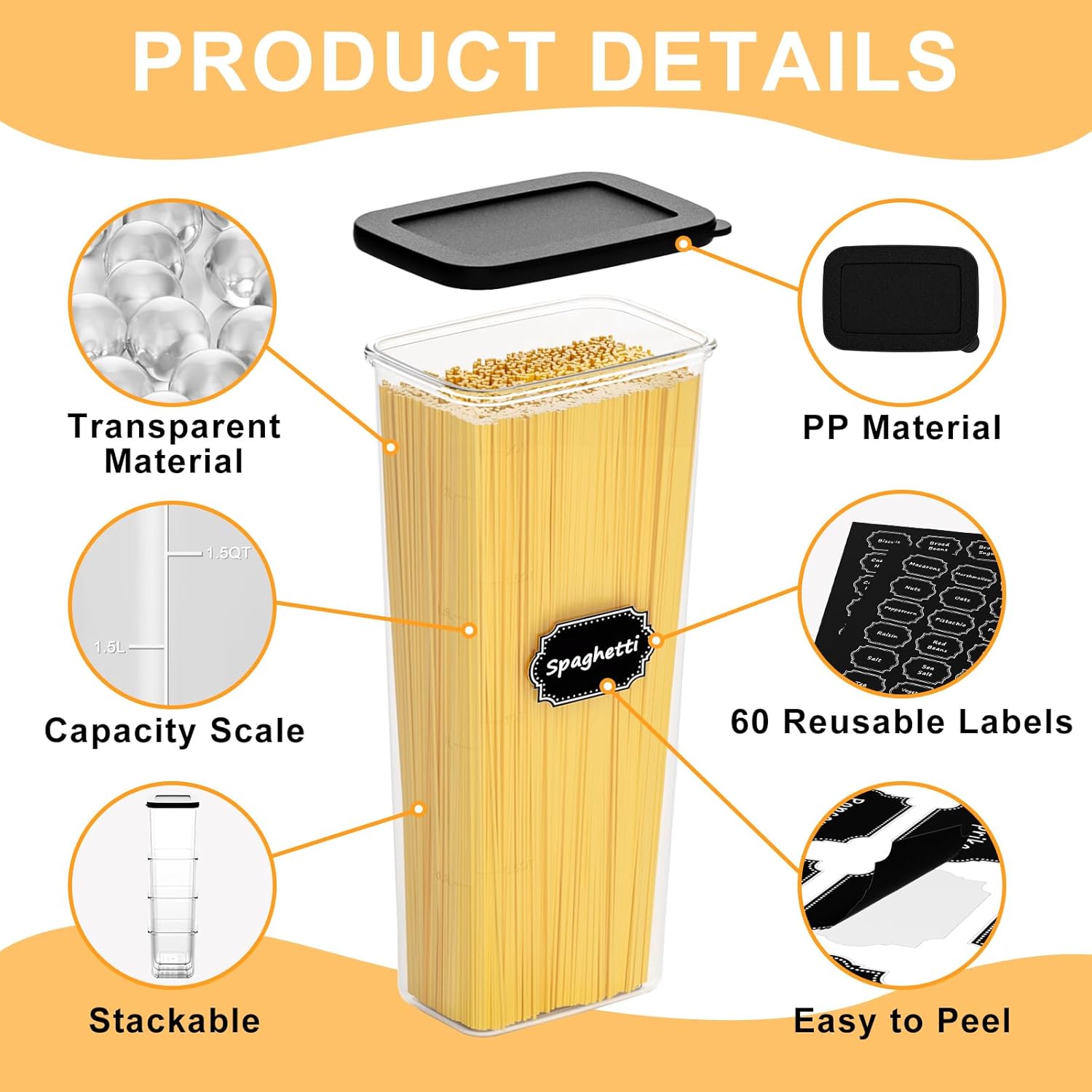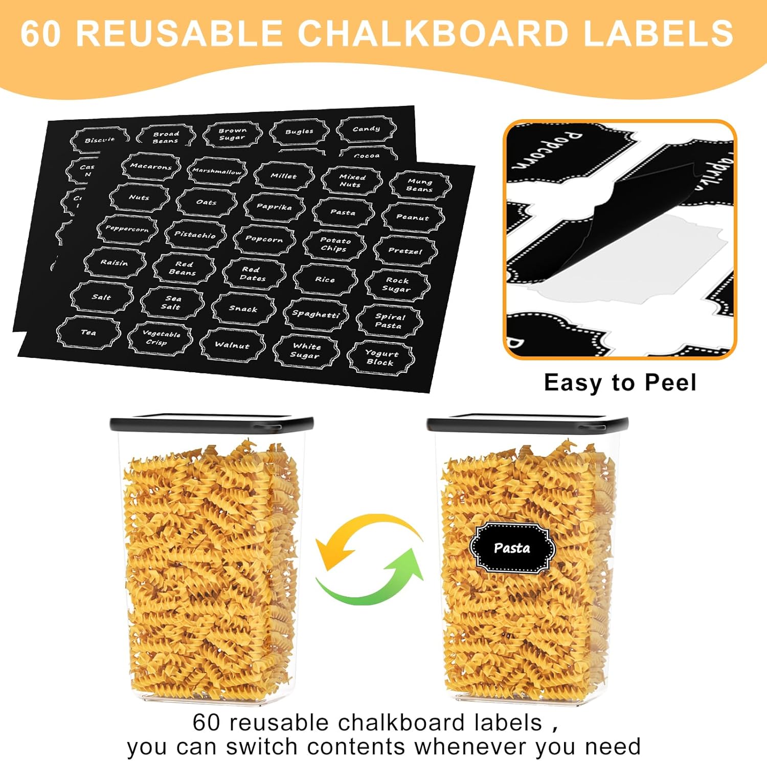 60 Reusable Labels: Besides 7 pack food storage containers with lids also comes with 60 reusable labels, you can complete removal and relabeling without leaving a trace. Which will help you never confuse flour with powdered sugar or baking powder with baking soda