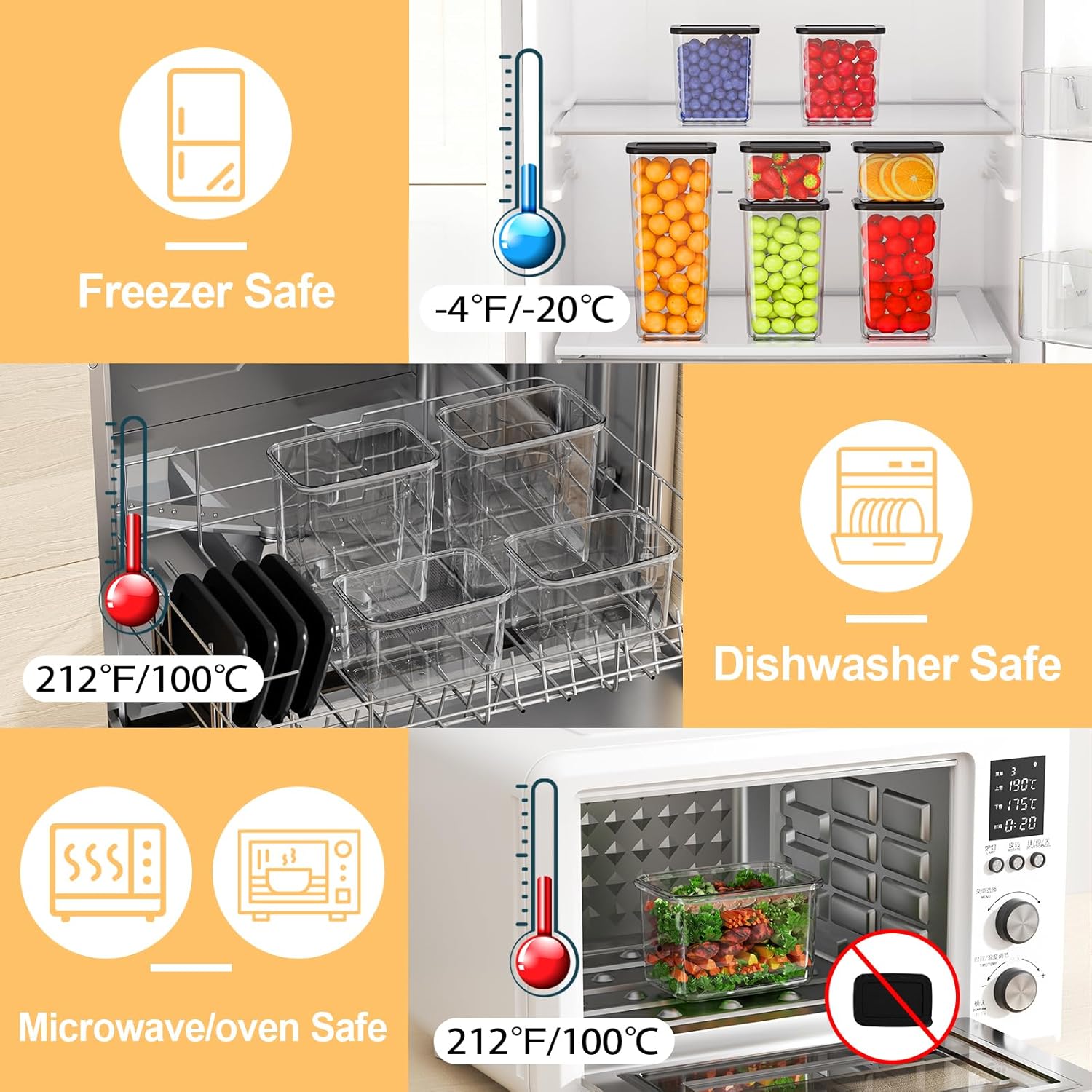 Food Grade Material: Our airtight food storage containers with lids are made of food-grade PP material, thickened overall, more durable. Transparent airtight containers have clear capacity scale on the side, easy to see what’s inside and know how much is left. Dishwasher / refrigerator /microwave safe. Note: The lids cannot be used in the microwave