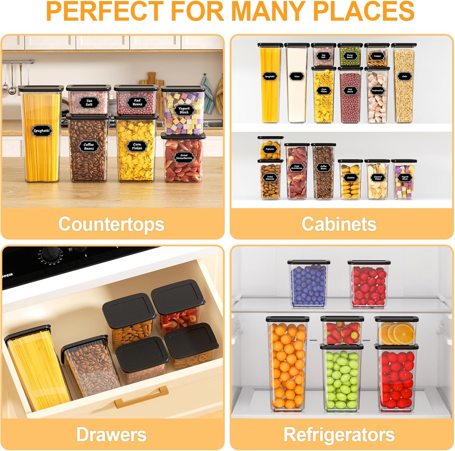 Organize your kitchen with airtight food storage containers! They are stackable and have a highly transparent design, saving you valuable space in your pantry and kitchen.