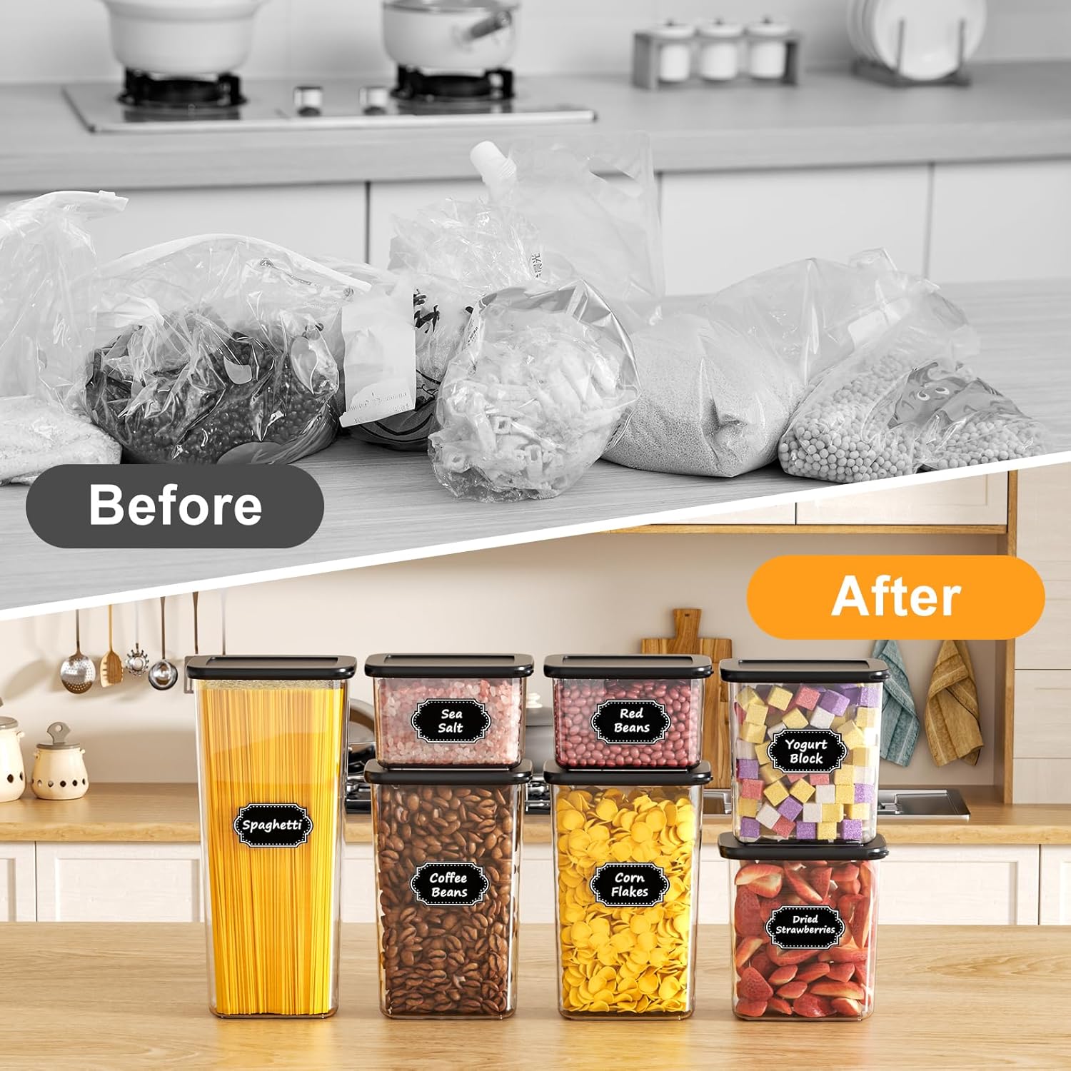 Nifogo Airtight Food Storage Containers with Lids 7 Pack, kitchen Storage Containers, Kitchen and Pantry Organization Set, for Cereal, Flour, Sugar, Pasta, Dry Food, Include 60 Labels