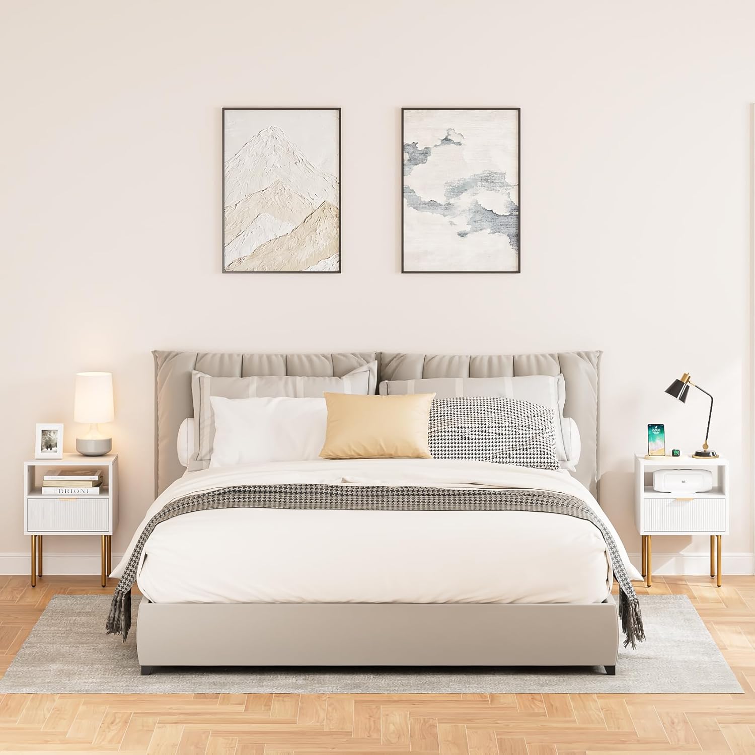 Simple and Modern Design White Nightstand: classic white and matte gold design, creating a simple and modern atmosphere, suitable for various styles of home decoration