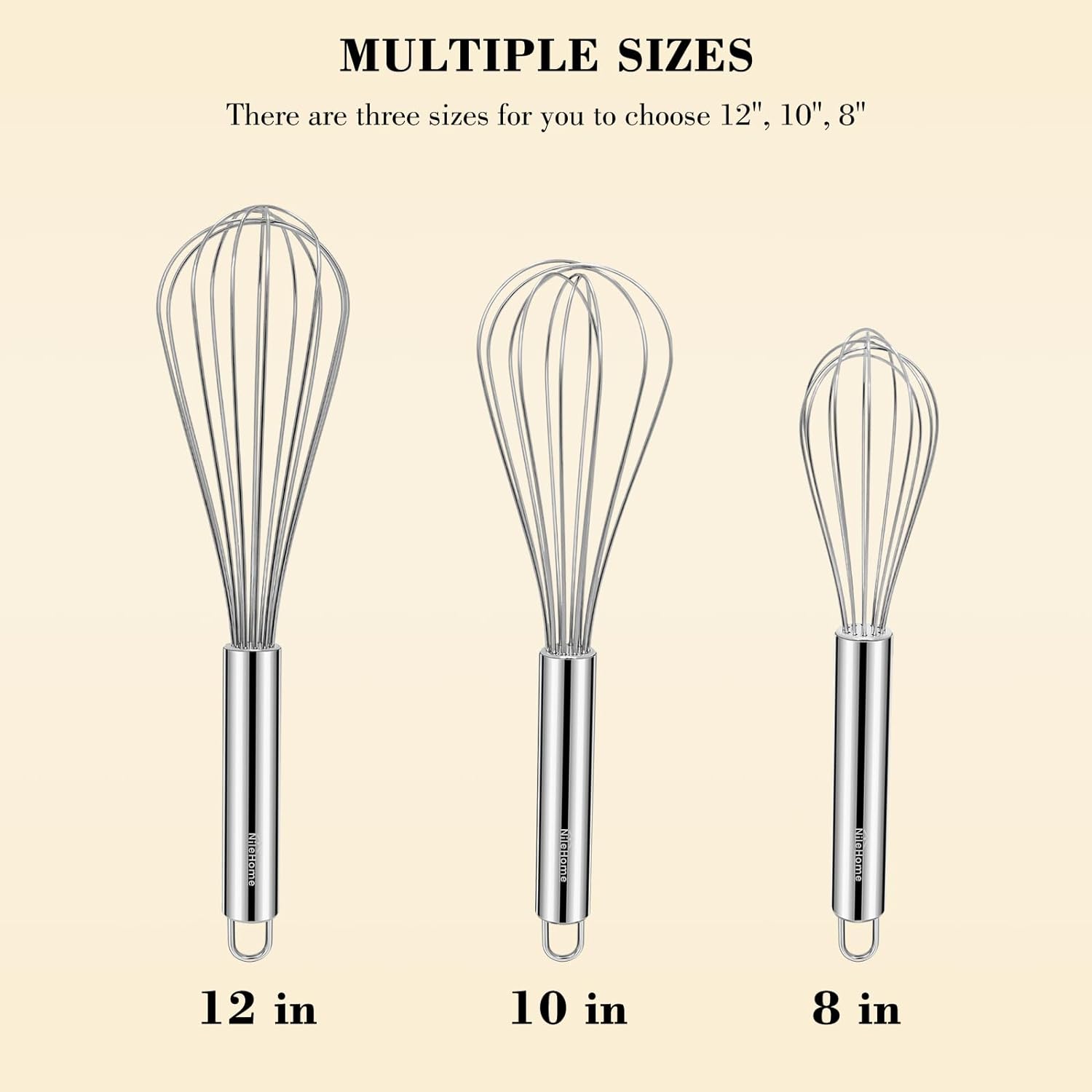 NileHome Stainless Steel Whisk Set 8″ 10″ 12″ Kitchen Whisk Balloon Whisk Kitchen Wisk Wire Whisks for Cooking, Whisking, Blending, Beating, Stirring-3 Pack…