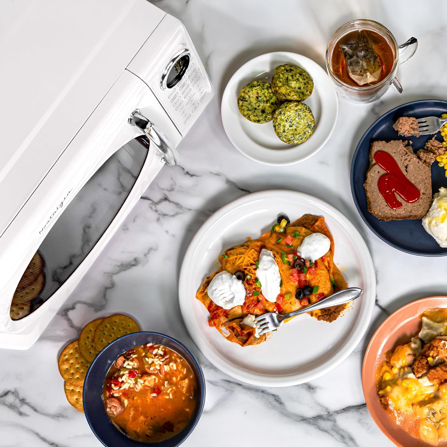 Nostalgia Retro Microwave Oven – 0.7 Cu Ft, 700-Watt Countertop Size with Glass Turntable, Child Safety Lock, 8 Auto-Cook Programs, Digital Clock – White