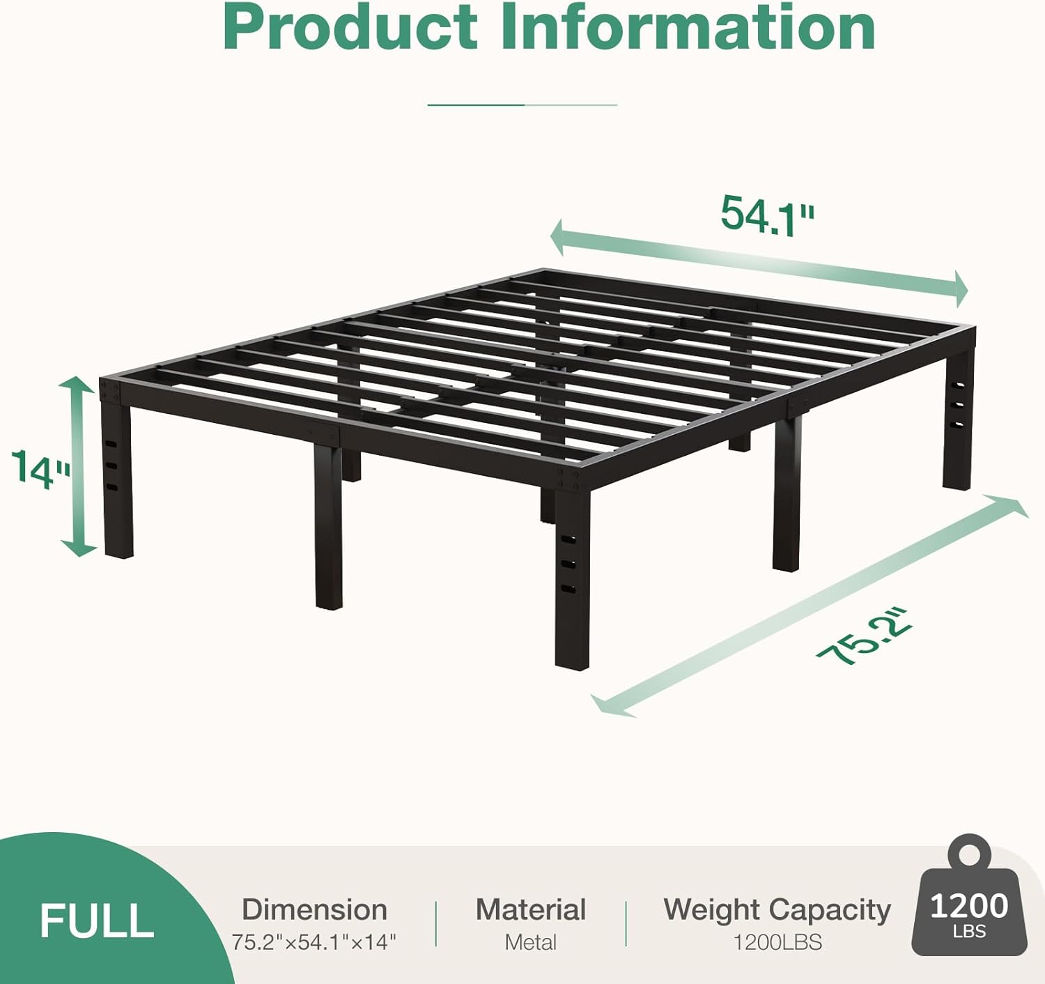 Novilla Full Size Bed Frame, 14 Inch Metal Platform Bed Frame Full Size with Storage Space Under Bed, Heavy Duty Steel Slat Support, Easy Assembly, No Box Spring Needed