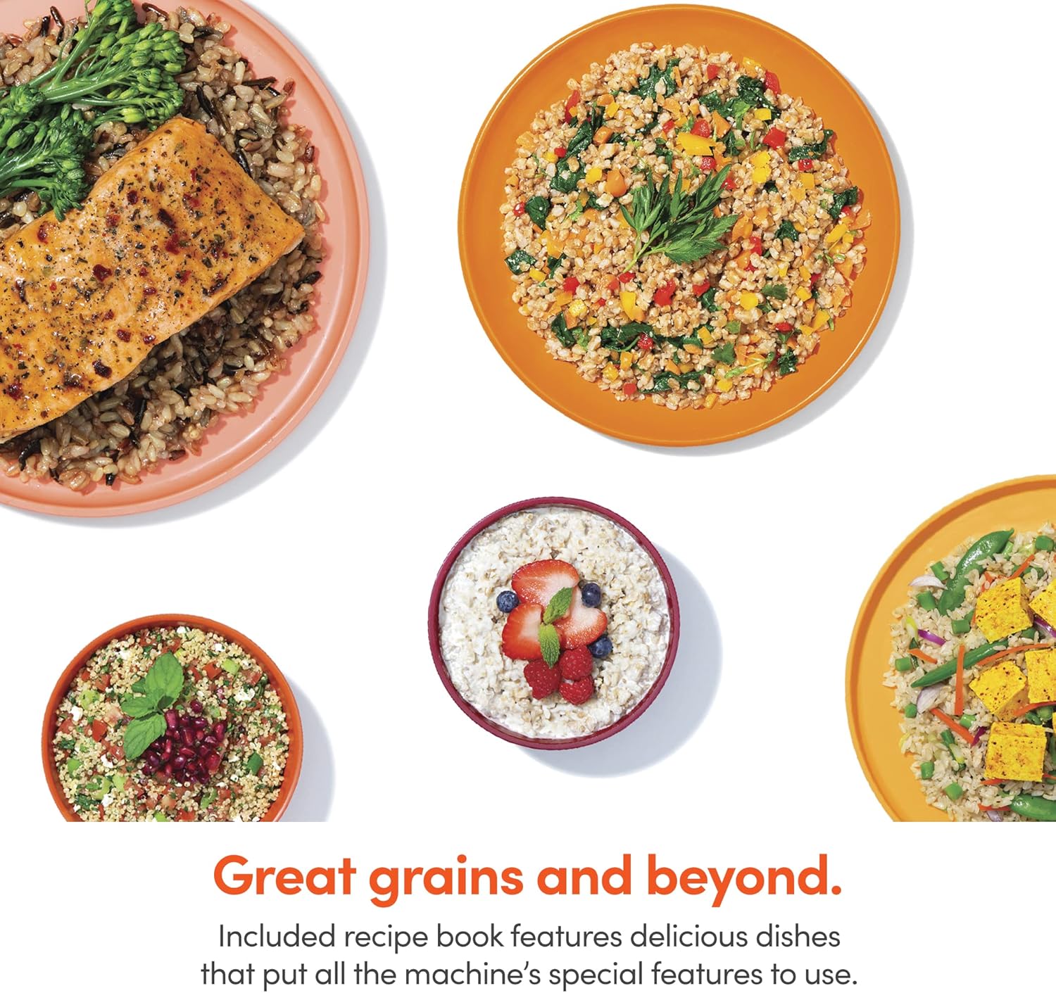 Features “Brown rice,” “White rice,” “Oats,” “Quinoa,” and “Grains” presets to cook every grain, plus a “Steam” program for veggies, fish, and beyond. Delay Start and Keep Warm functions let you prep according to your schedule.