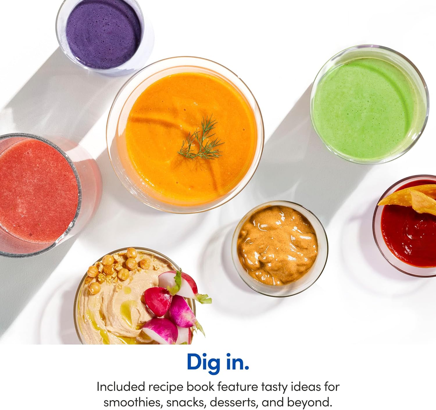 Includes: (1) 1200 Watt Motor Base, (1) 64 oz (1.9L) Blender Pitcher with Lid and Vented Lid Cap, (1) Tamper, (1) 32 oz (900ml) Cup, (1) 24 oz (700ml) Handled Cup, (2) To-Go Lids, (1) Easy-Twist Extractor Blade, and Recipe Book