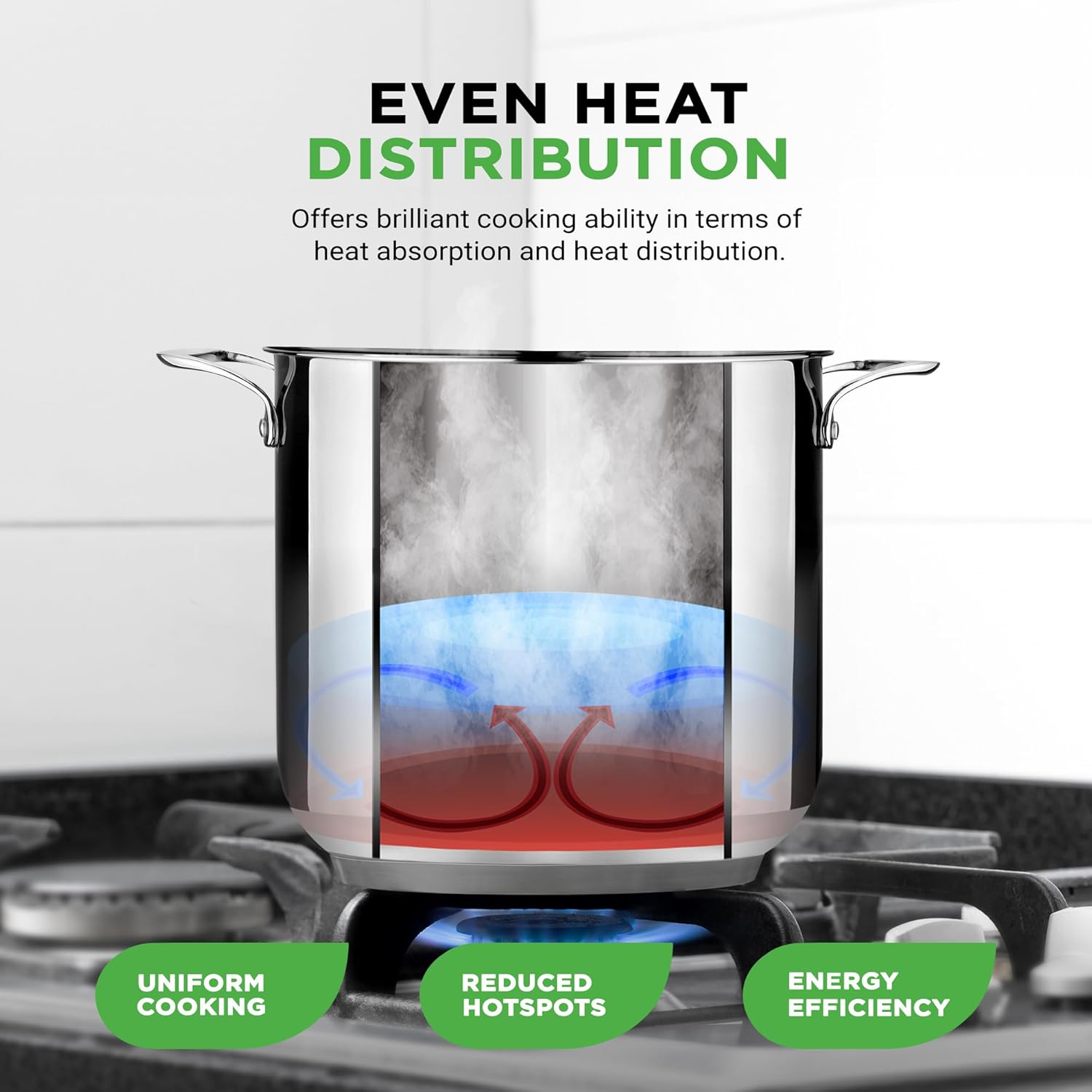 15 QUARTS: The NutriChef Stainless Steel Large Cooking Pot features 15-quart capacity weighing 6.7 lbs w/ lid which is the perfect size for boiling eggs, simmering stocks & soups or making sauces for a large crowd. Great for commercial & home cooking