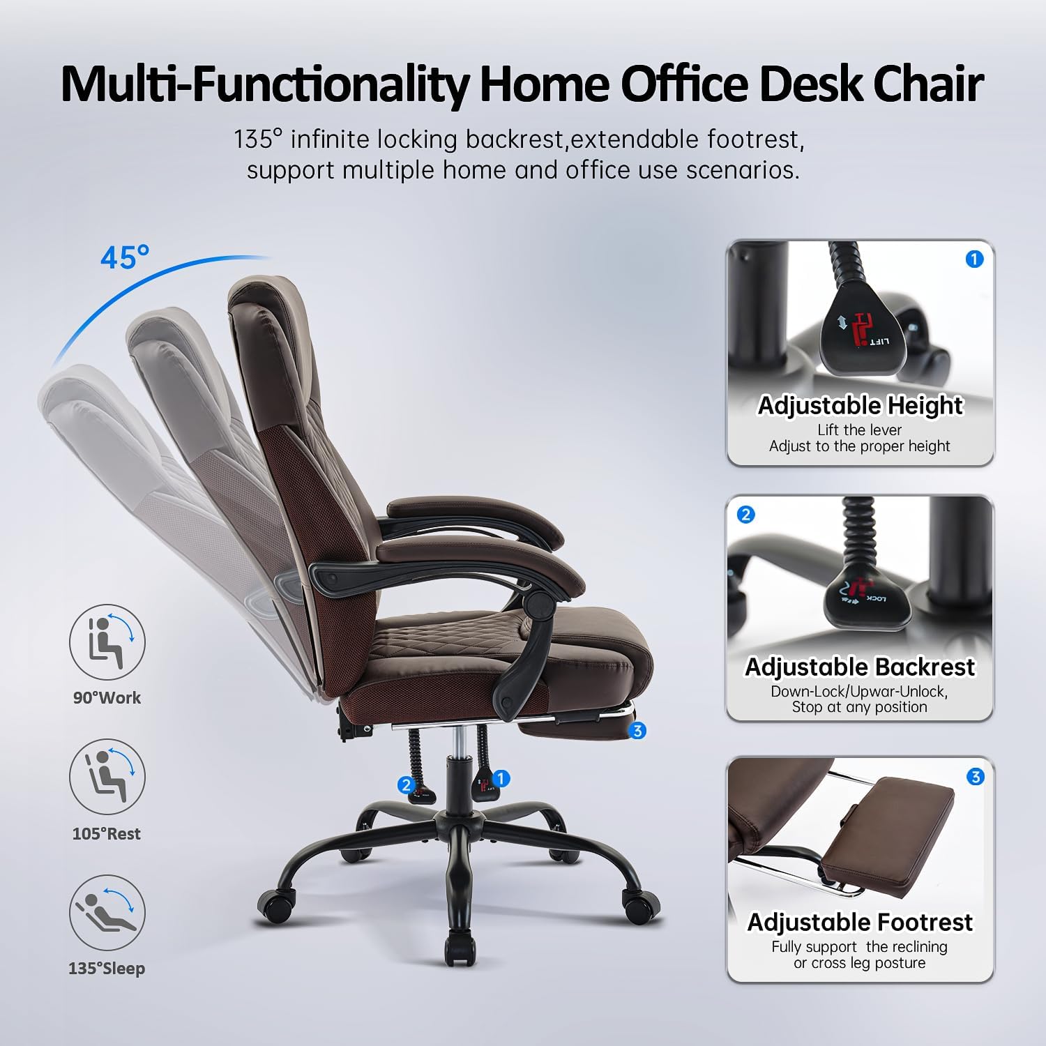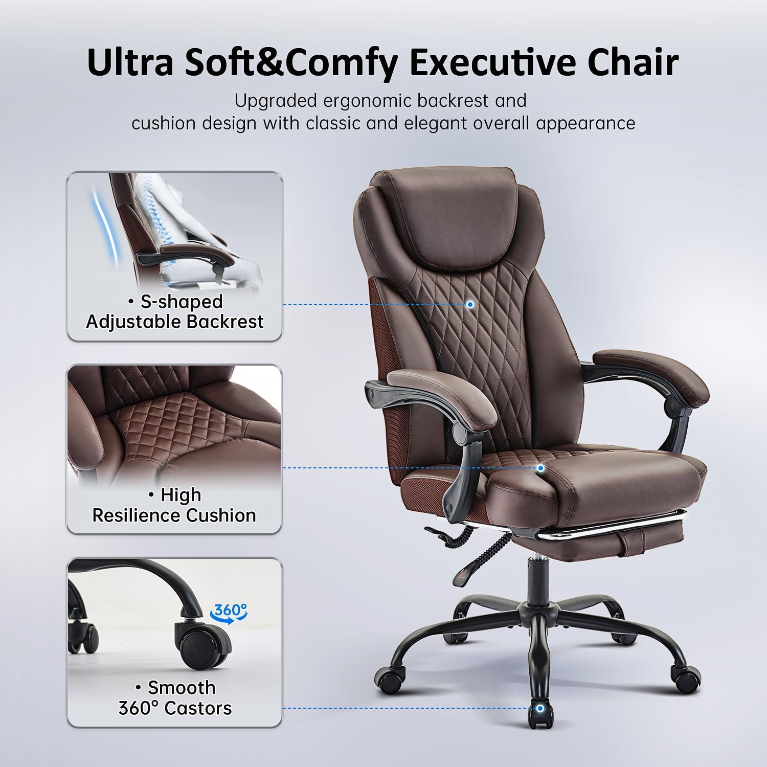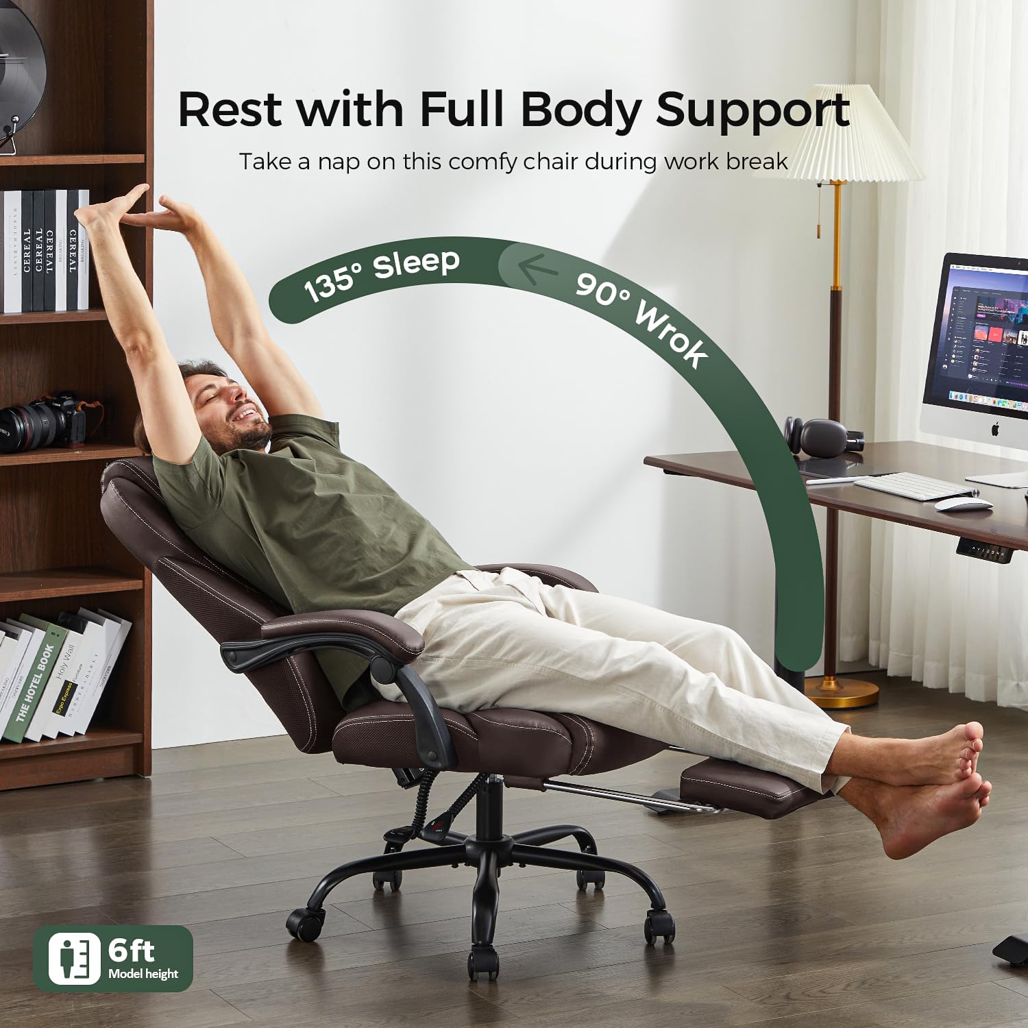 Office Chair, Big and Tall Office Chair with Foot Rest Ergonomic Desk Chairs Reclining High Back Leather Chairs with Lumbar Support(Brown)