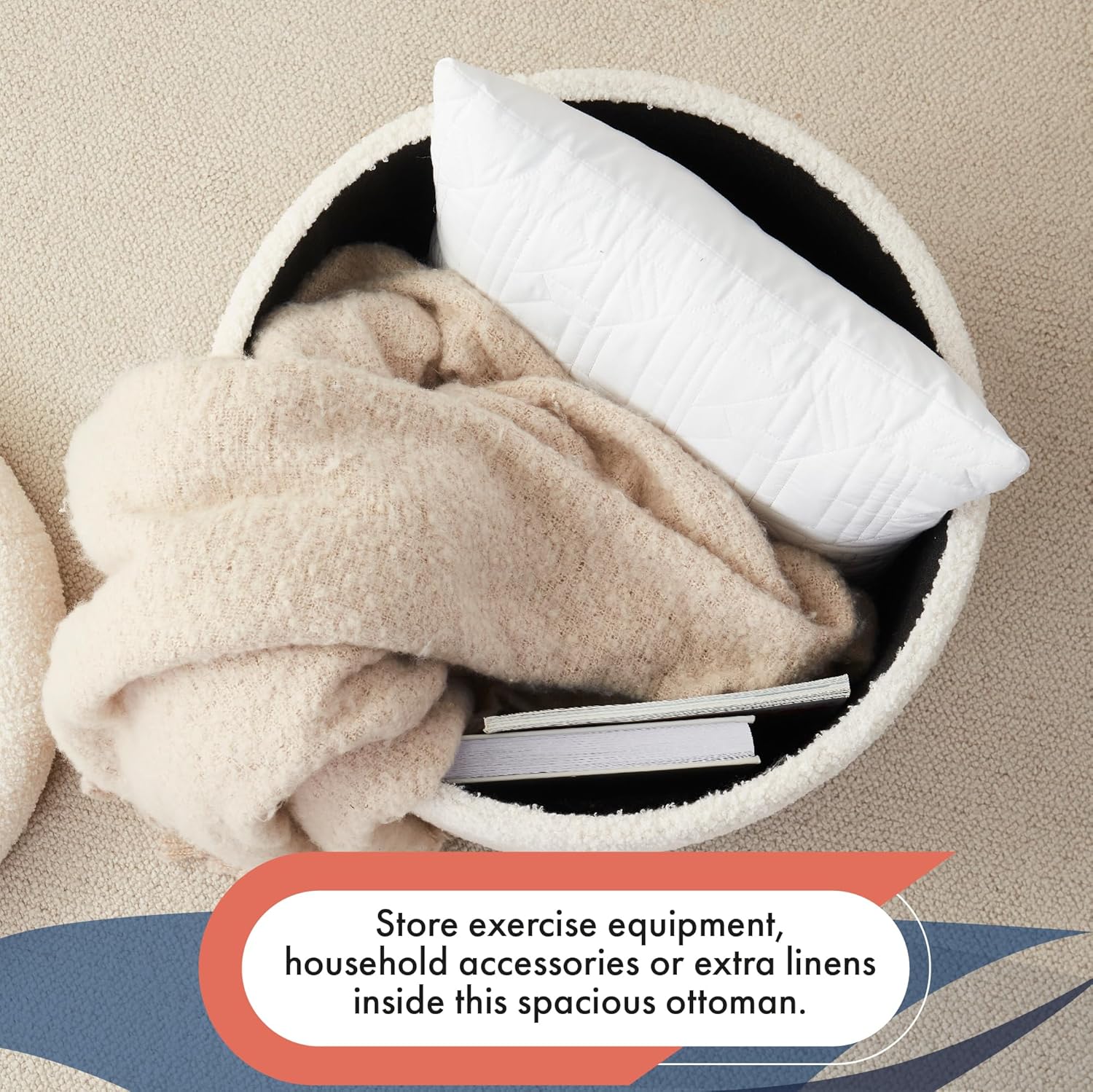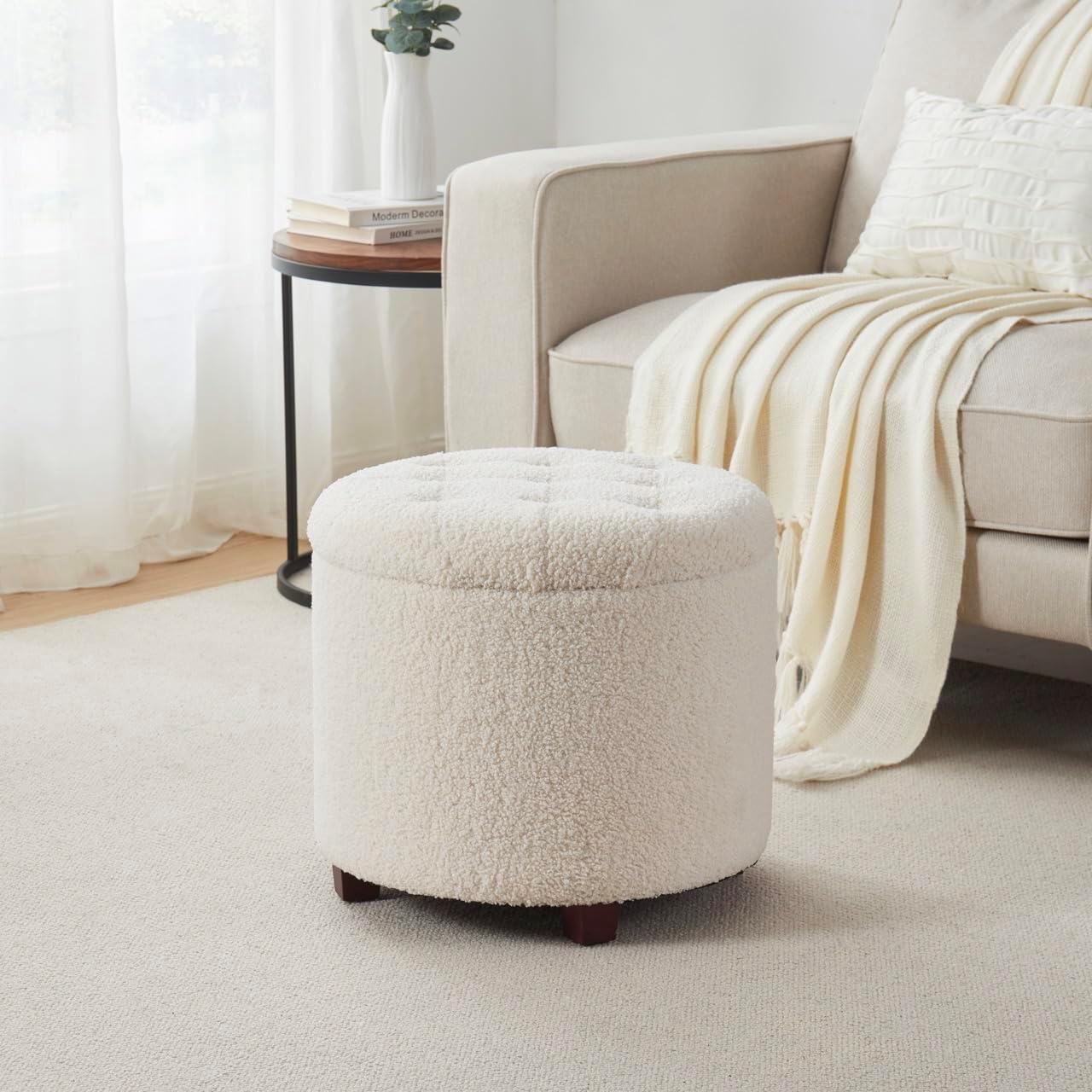 DURABILITY – Enjoy long-lasting performance with this highly durable boucle fabric ottoman. It’s designed to withstand daily use in your home and is perfect for storing all of your household items, such as blankets, magazines, and more.