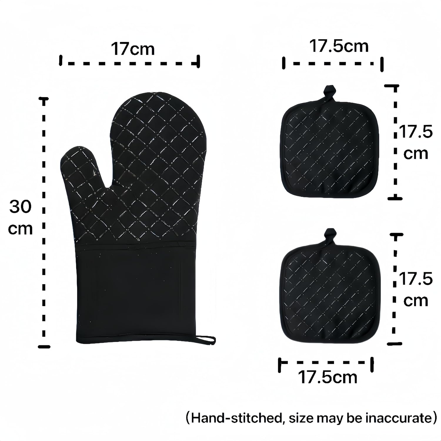 Oven Mitts and Pan Racks 4-Piece Set, Extended Kitchen Oven Mitts and Pan Racks, Heat Resistant 500 °F, Silicone Non-Slip Surface for Baking and Cooking (Black)