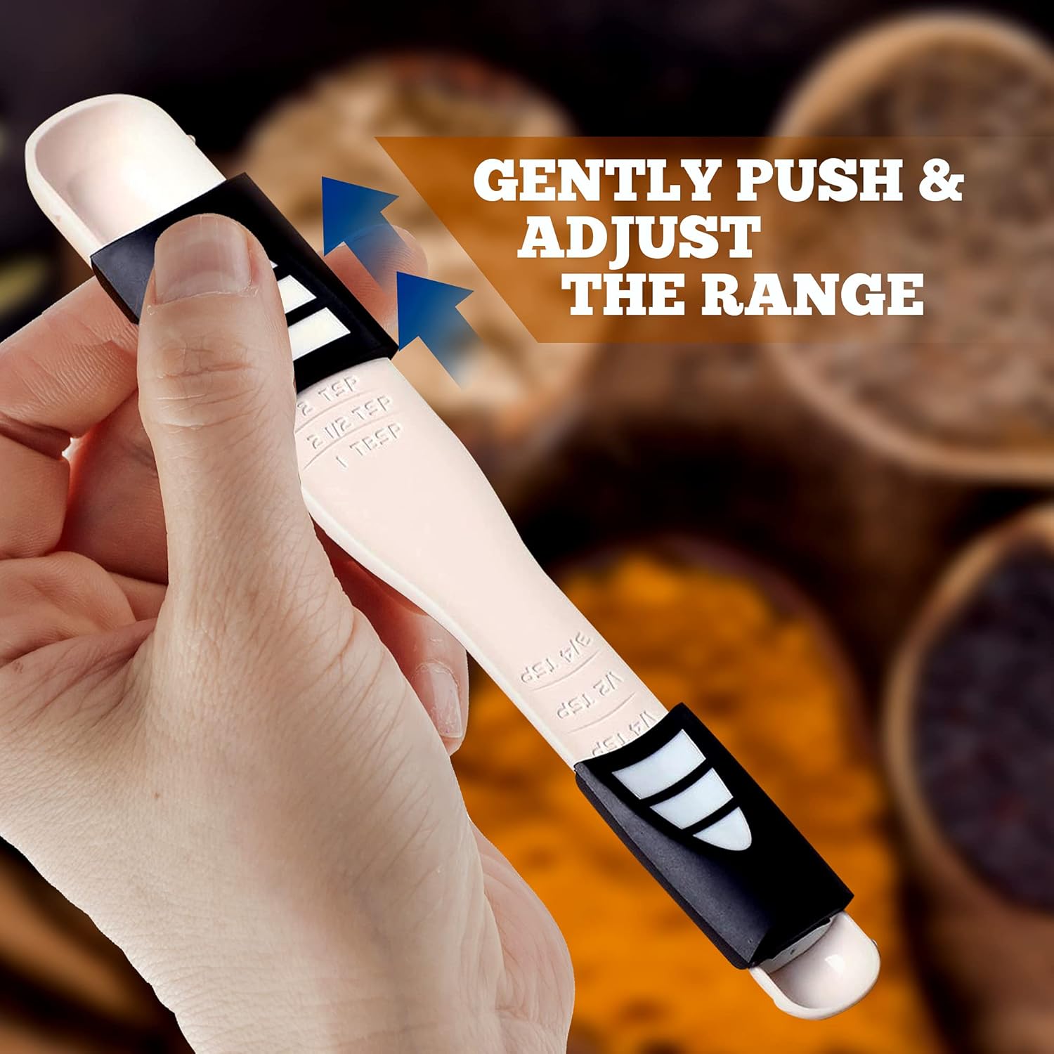 ๐— ๐—ฎ๐—ธ๐—ฒ๐˜€ ๐—บ๐—ฒ๐—ฎ๐˜€๐˜‚๐—ฟ๐—ถ๐—ป๐—ด ๐—ฒ๐—ฎ๐˜€๐˜† ๐—ฎ๐—ป๐—ฑ ๐—พ๐˜‚๐—ถ๐—ฐ๐—ธ โ€” Accurately measure small amounts of wet or dry ingredients with this 9-in-1 measuring spoon. Itโ€™s so easy to use, just slide the adjuster to your desired amount and scoop or pour your ingredient for a precise measurement.