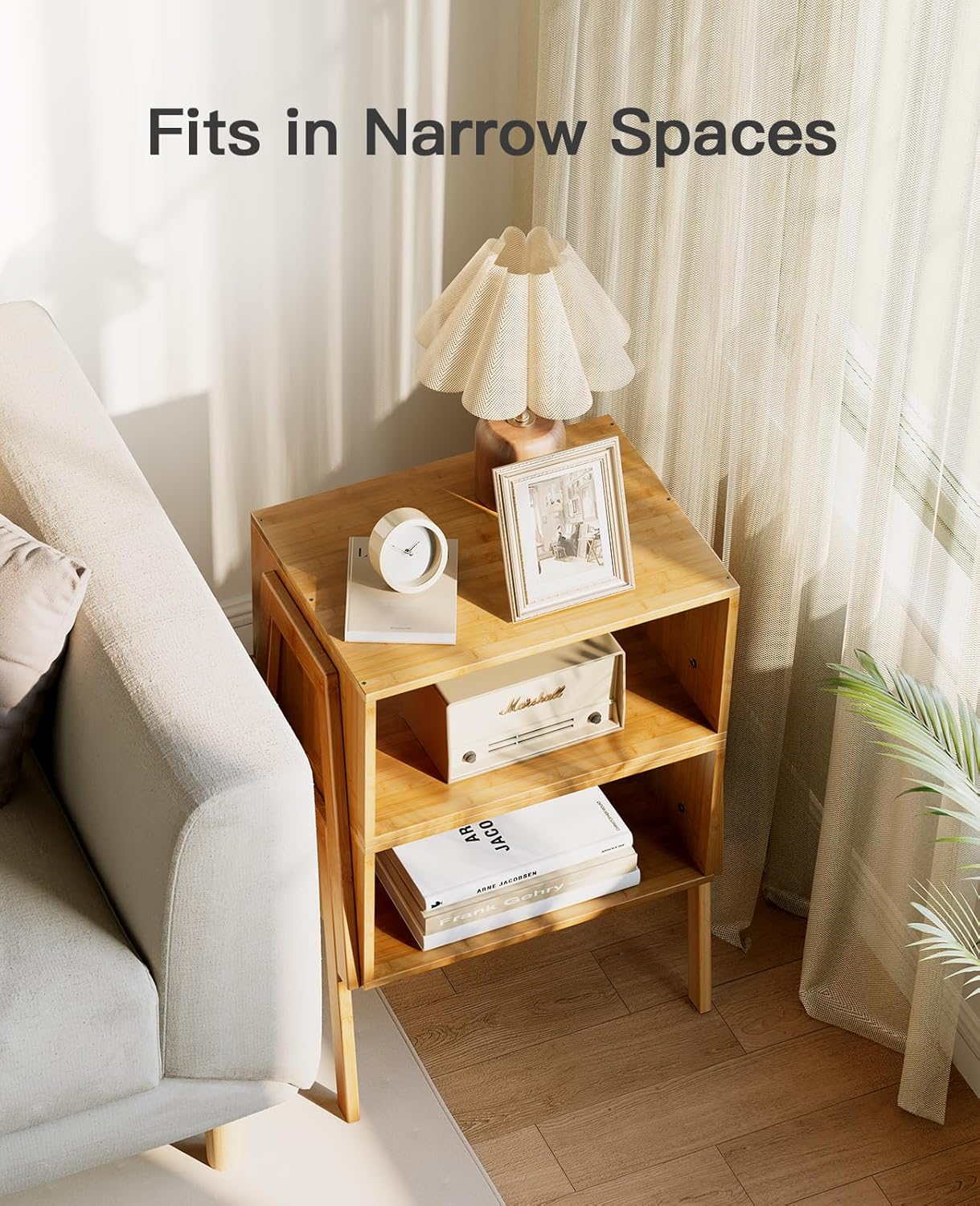 Pipishell Bamboo Stackable End Tables, Wood Living Room Nightstand, Bedside Tables for Bedroom Storage, 2PCS