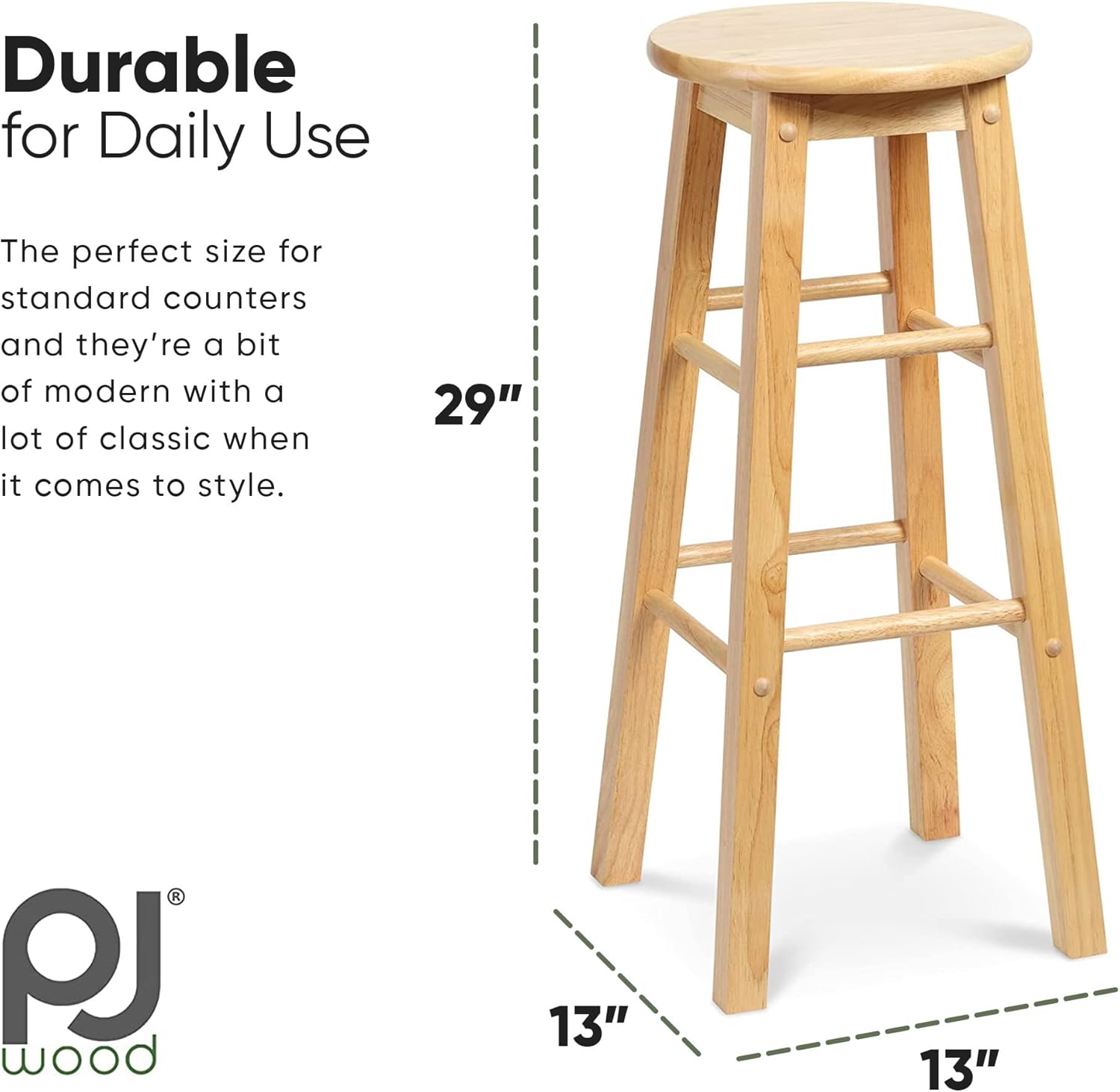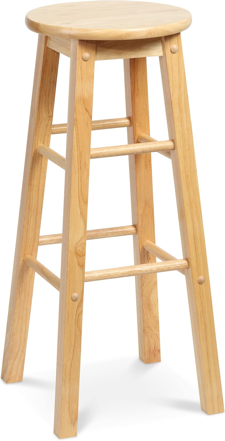 PJ Wood 29 Inch Tall Classic Round Seat Kitchen Counter Bar Stools 2 Pack with 4 Square Legs for Homes, Dining Spaces, and Bars, Natural