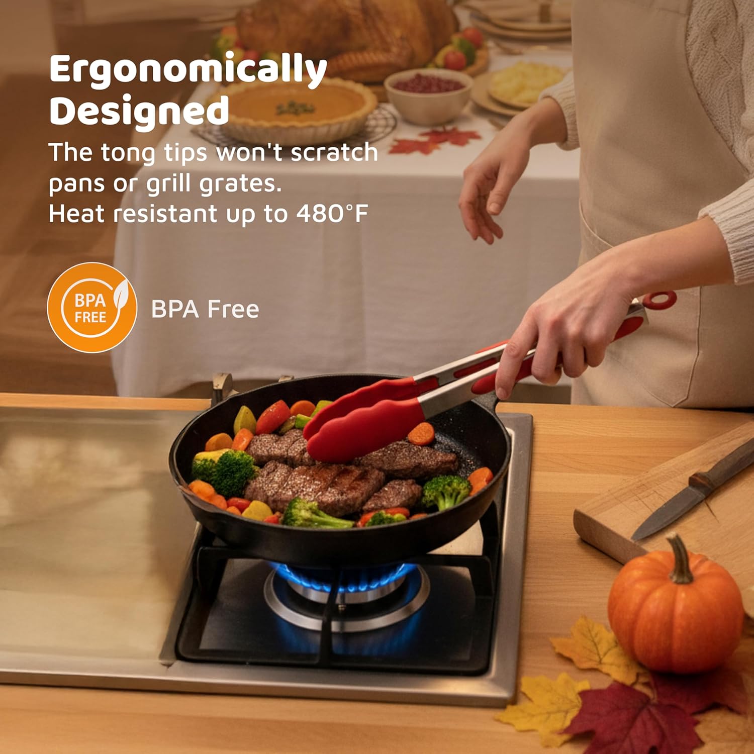 Heat-Resistant Performance: Designed for durability, these cooking tongs for nonstick cookware endure up to 480°F, perfect for grilling, baking, or serving meals indoors and outdoor kitchen use