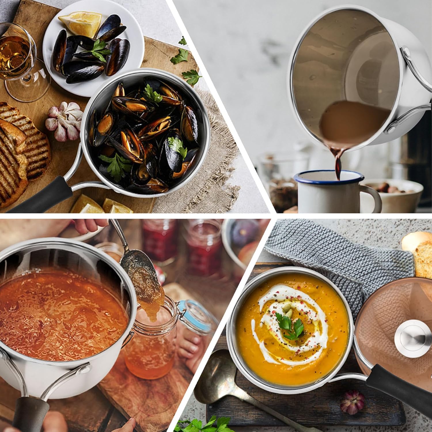 【Heat Evenly】Stainless steel saucepan transfers heat quickly and evenly, Close fitting lid on the saucepan would speed up cooking for save cooking time and energy, Our saucepan could work on the gas, and electric ranges, ceramic stove, BUT not support for oven and induction