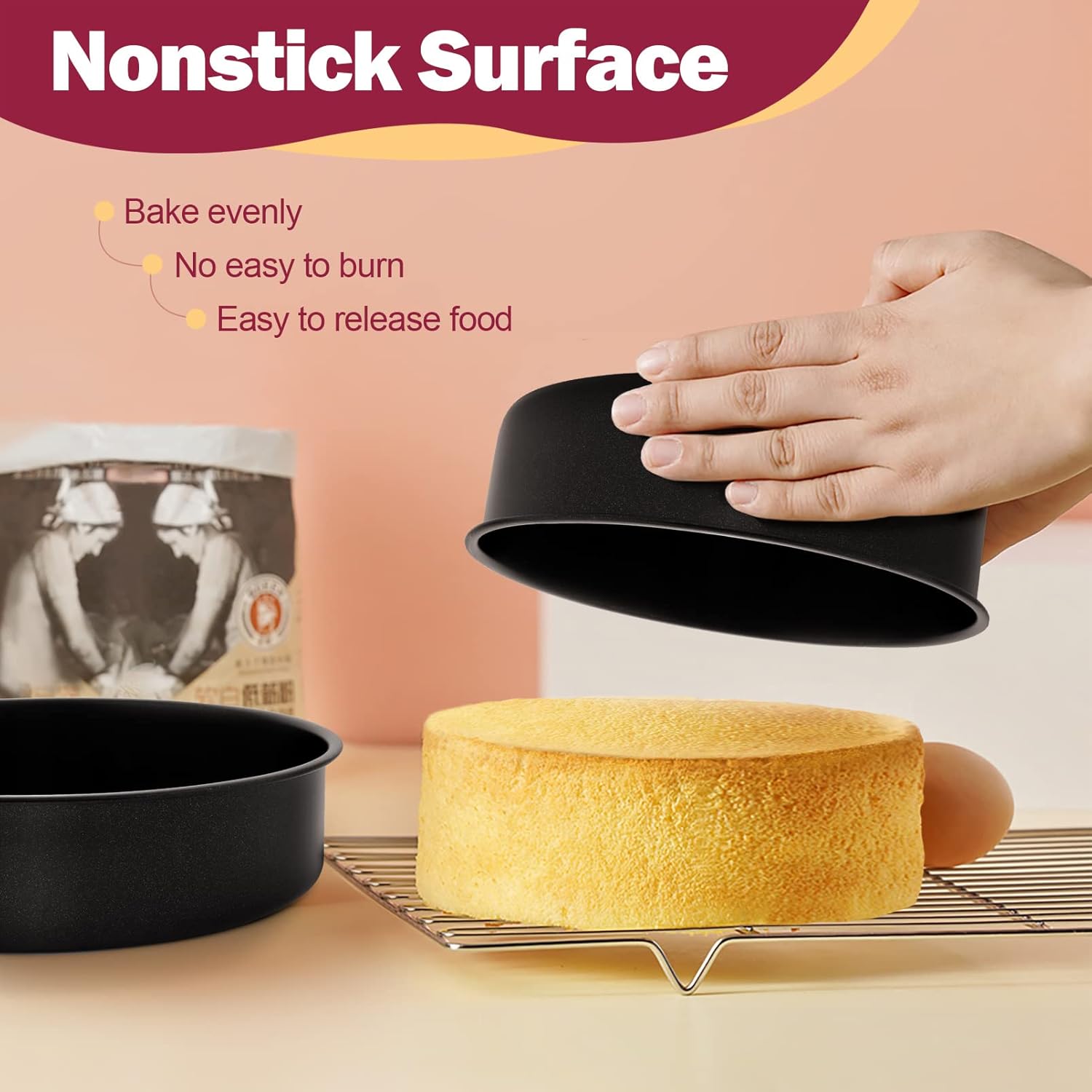 【NON-STICK, EASY CLEAN】Coated with healthy non-stick coating all around of cake pans, Smooth surface allows cakes to be come out perfectly and no worries about burning situation, Always clean in a breeze, Easy to clean by hand under soapy water, But please do not use steel wool to avoid scratching the non-stick surface, Ensure to serve for you lasting