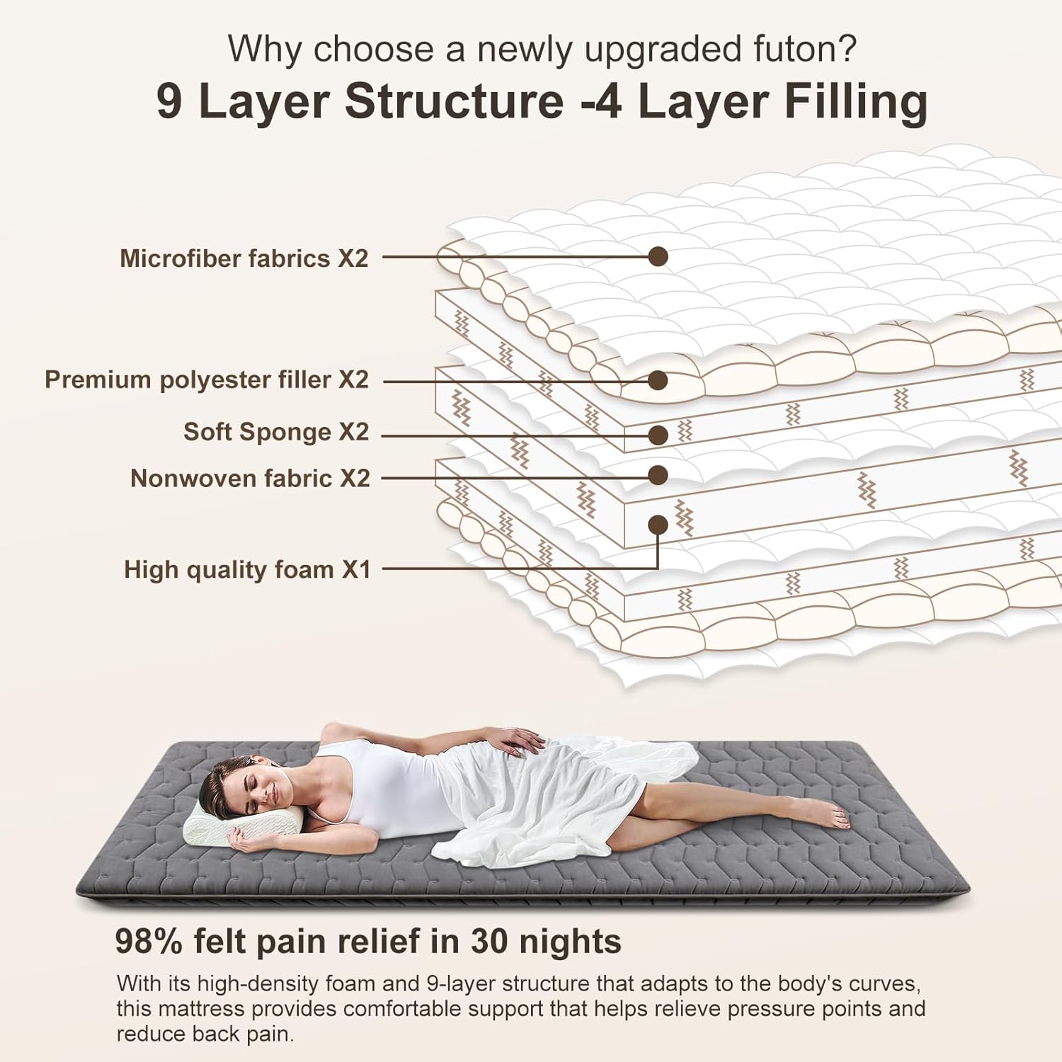 Multi-Scenario Applications: It can be used as Bedroom Futon/Living Room Futon/Tatami Mat/Floor Mattress/Tent Mat/Guest Mattress/Japanese Bed Mat/Yoga mat/Nap on floor/Visitor sleep over/Kids play mat.
