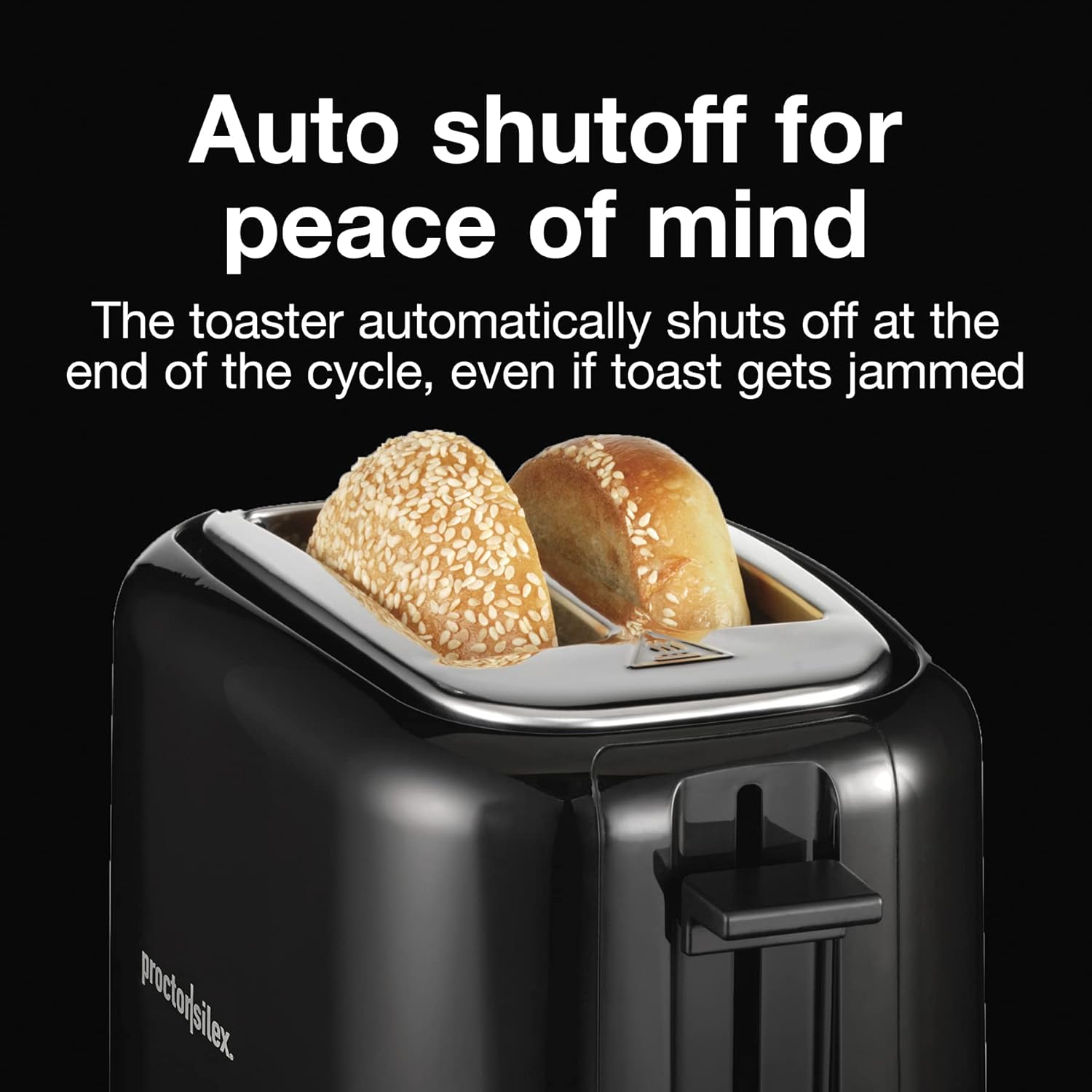 AUTO SHUTOFF FOR PEACE OF MIND: The toaster automatically shuts off at the end of the toasting cycle, even if toast gets jammed.