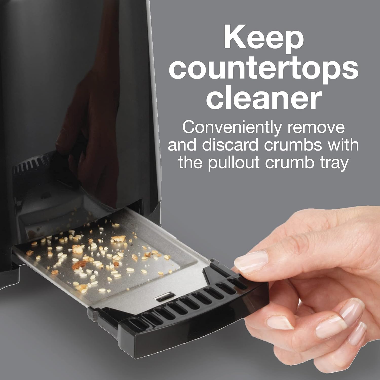 KEEP COUNTERTOPS CLEANER: Conveniently remove and discard crumbs from the bottom of the bread toaster with the pullout crumb tray, so they don’t end up on your countertop.