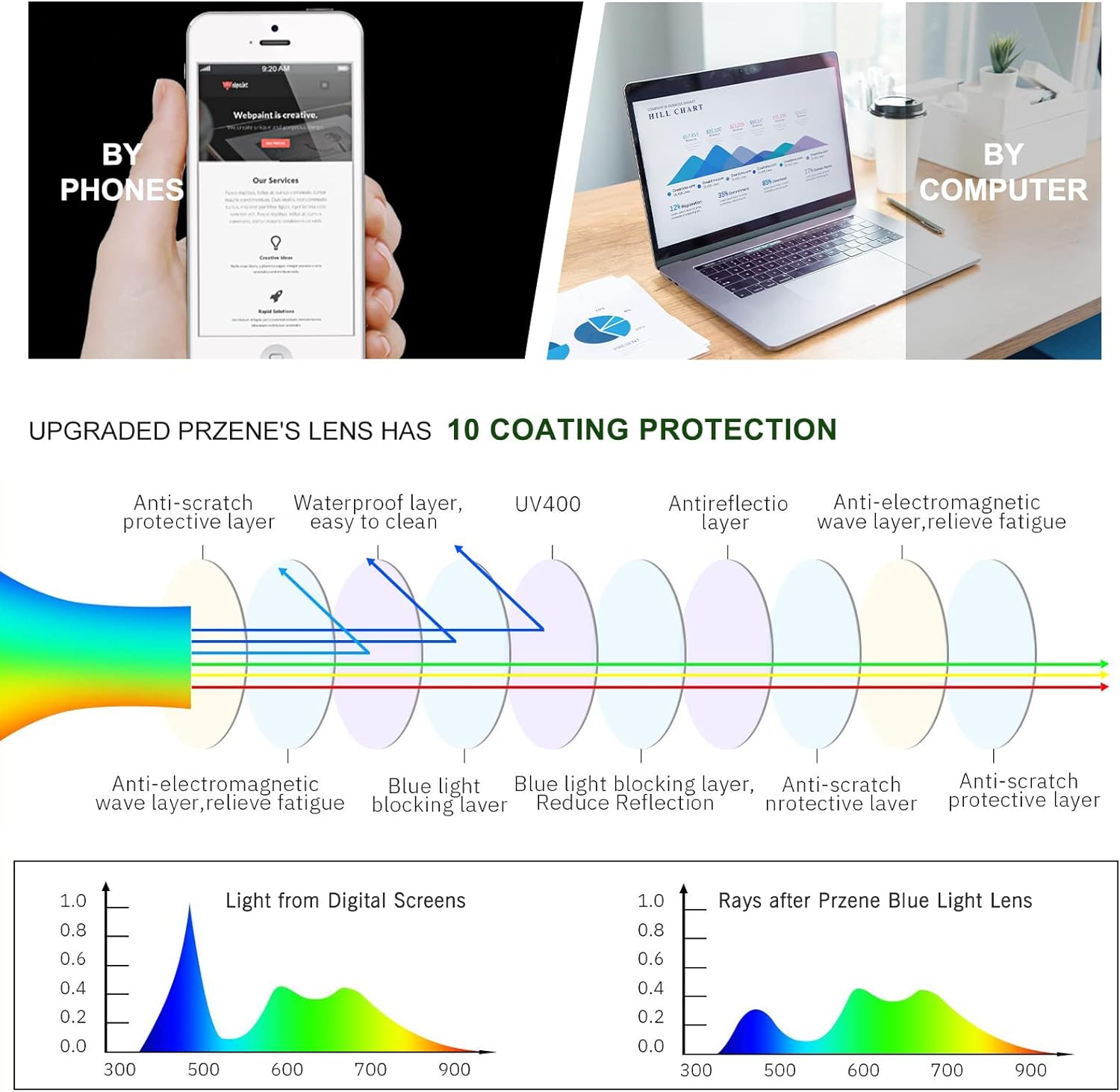 Anti Blue Light Glasses-Blue Light Lens can Block and Filter Harmful Blue Ray,Effectively Reduce Eye Strain and Migraine Coming From Smart Screens (computer,cellphone,TV and etc.)when Gaming and Working.