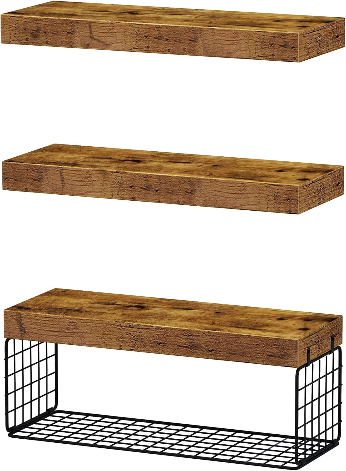 QEEIG Bathroom Shelves Over Toilet – Wall Mounted Floating Shelves Toilet Paper Storage Small Farmhouse Decor Shelf 16 inch Set of 3, Rustic Brown (019-BN3)