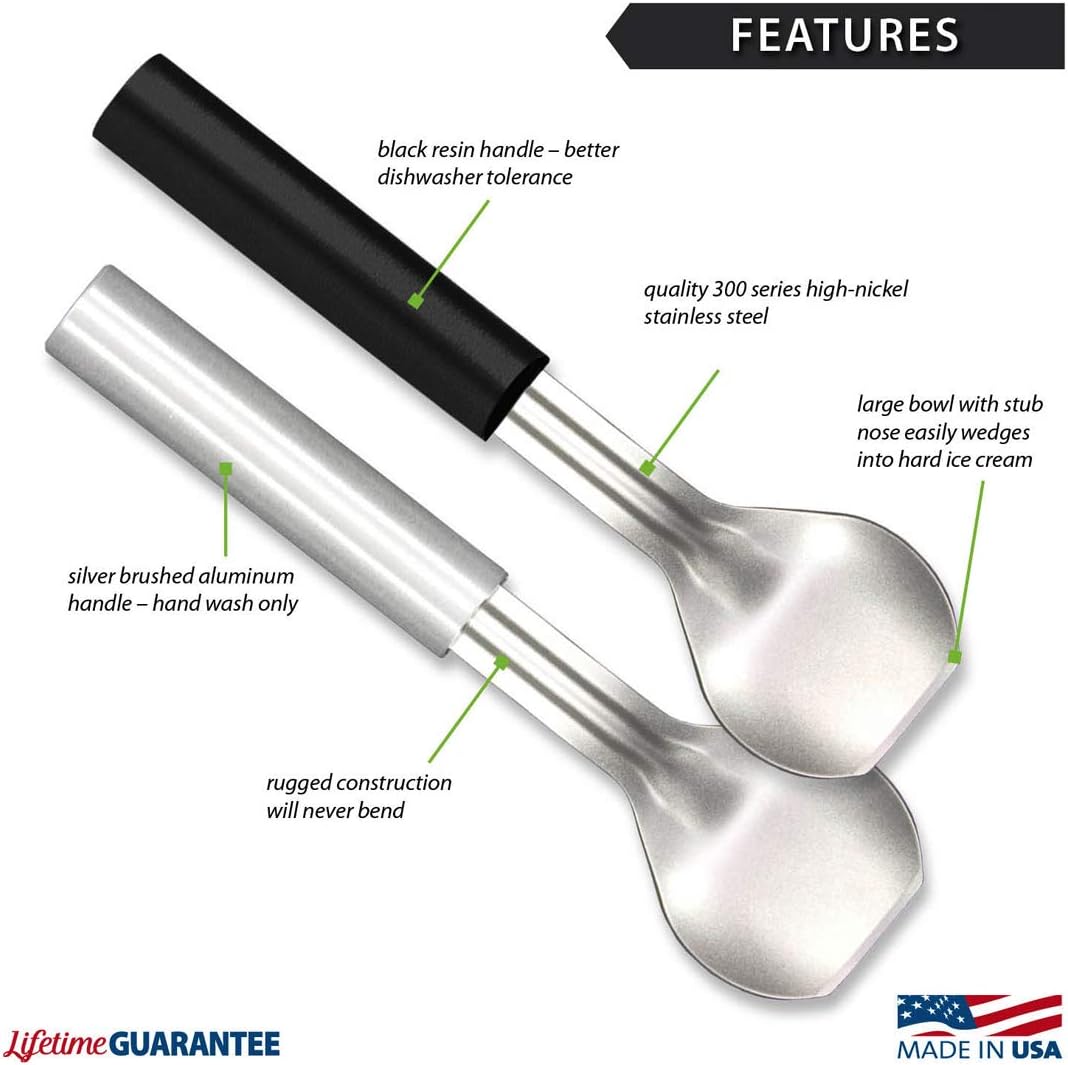 Rada Cutlery Ice Cream Scoop (W237), 2.38×2.38 Stainless Steel Bowl, 9.25″ Length, Made in USA, Black Handle